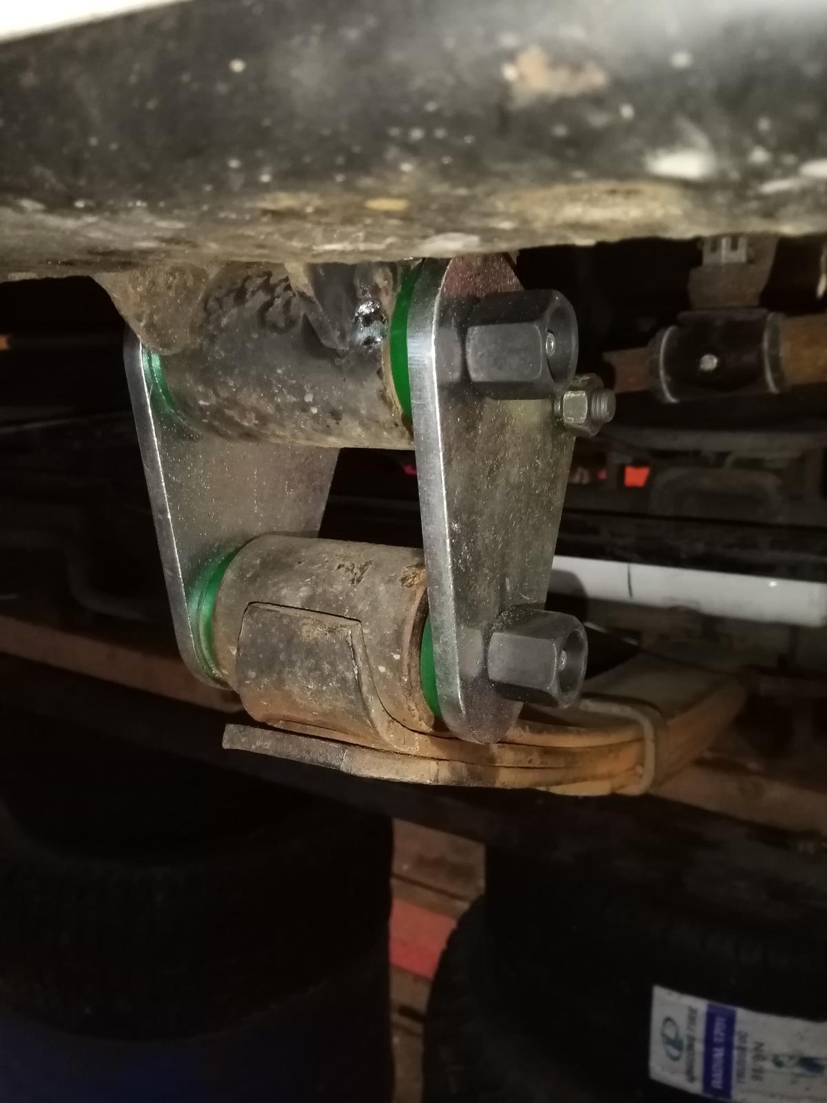 Joo onhan niissä pakoissa alimmaisena jäykkä lati mikä ilmeisesti estää kiertymistä. Taka-akselin liikevara 15 cm eli vetokoukku nousee vielä enemmän. Jos on säädettävä pukki niin renkaanvaihto käy ilman tunkkia.
