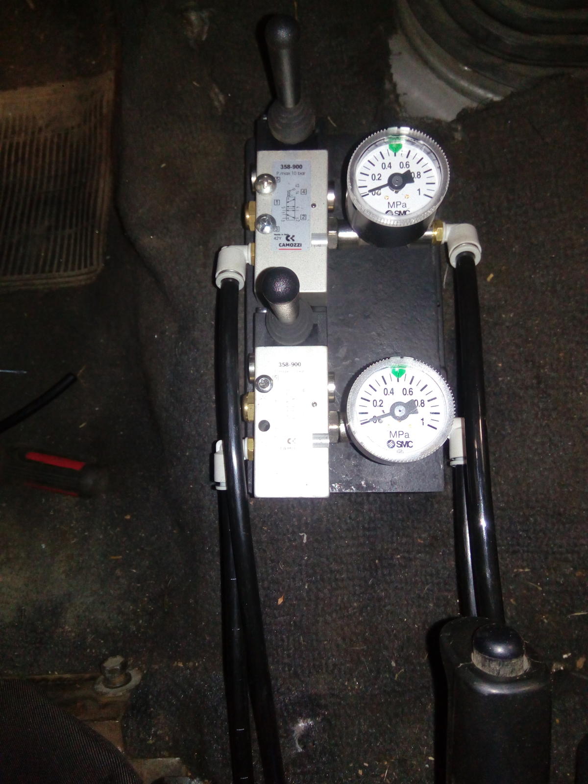 6 bar paineessa alkaa ilmajousi jo jäykistyä liikaa. Nollan ja kuuden barin välillä ratin asento kiertyy lähes 90 astetta! Ajossa 1-4 bar toimii hyvin. Kuvissa 0 ja 5 bar.
