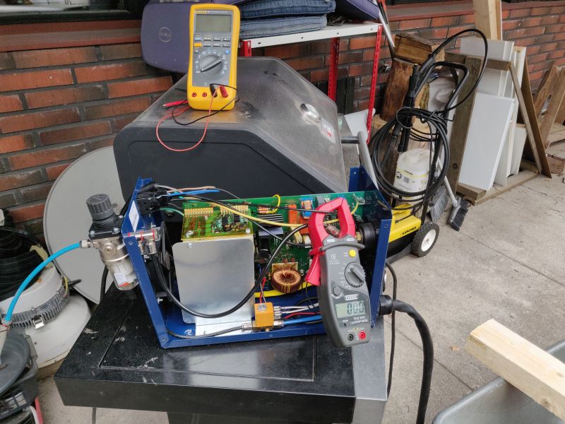 Laitteesta puuttui ilmaliitin ja maapihti. Pientä viritystä ja tulityönurkkaan koeajolle. Pettymys ja ihmetys oli suuri kun ei syttynyt. Onneksi tuli kokeiltua riittävän monta kertaa niin käyttäytymisestä paljastui lisää.- ilmaventtiili ei yleensä auennut - joskus yritti syttyä, mutta sammui heti Lisää mittauksia, mutta ei selvinnyt. Kaikki näyttäisi olevan kunnossa, mutta ei vaan syty. Ohjaukset toimii, pääjännite 330V ja reagoi oikein (antaa hälyytyksen) jos pudottaa ilmanpaineen. Kamat kasaan ja takas pajalle. |