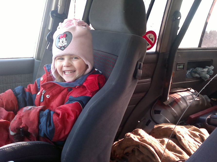 Meidän nuoremmalla pojalla on samat kujeet. Vanhempikin poika harrasti aikoinaan samaa touhua.Tämä kuva on otettu 05.03.2011. Käytiin ajamassa vähän "hankirallia", lunta oli silloin ihan mukavasti. Hinattiin pellolta eloton (löpö ja akut loppu) pajero verstaan pihaan. Apumiehellä tuntui olevan kivaa. Vaikeimmissa paikoissa huusi: Lukot päälle ja kaasu pohjaan.