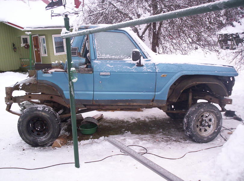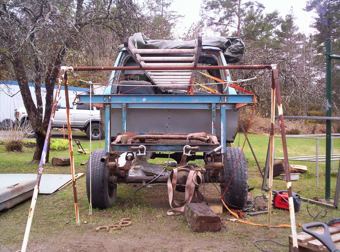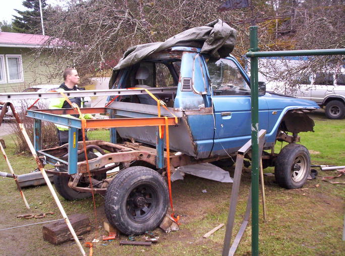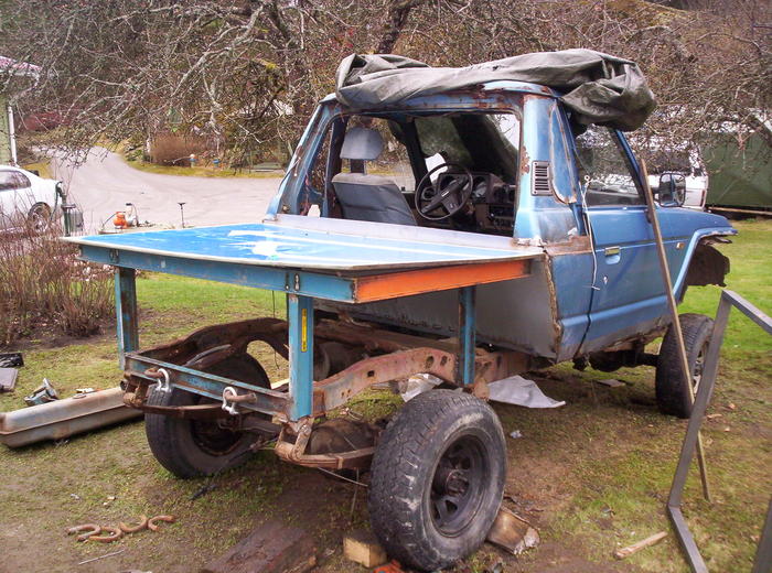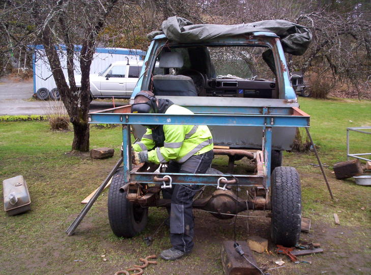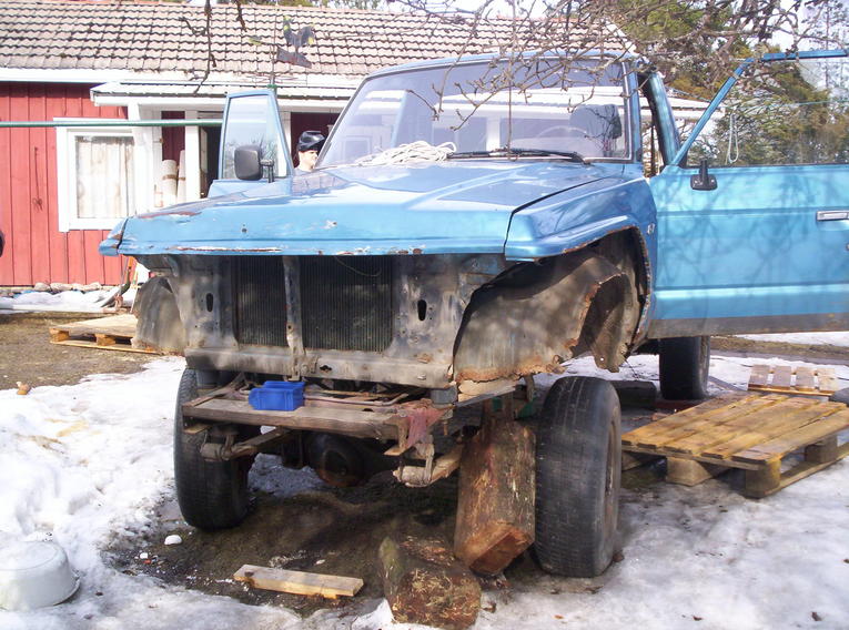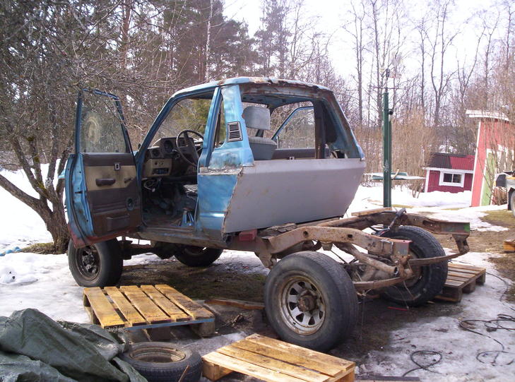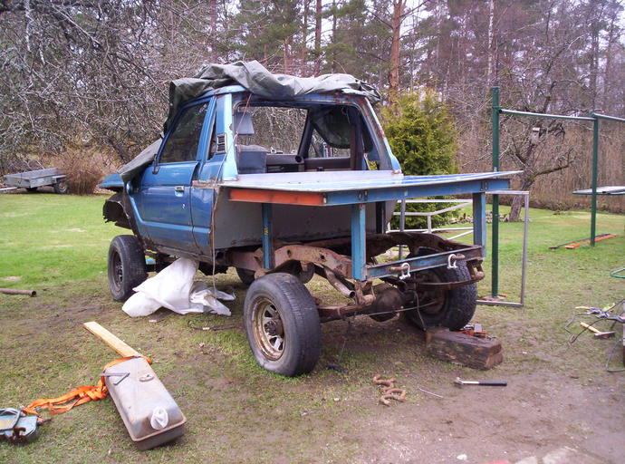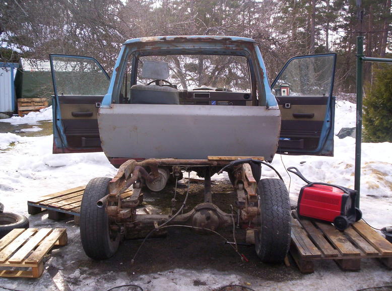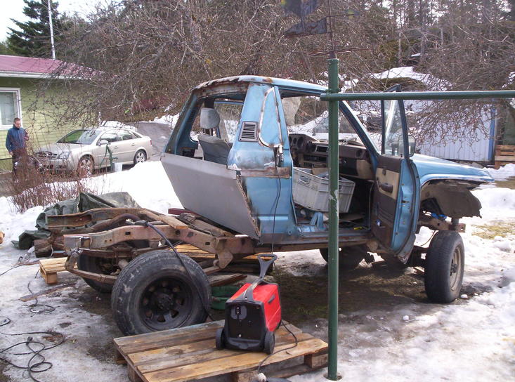 . Poistettiin ruosteet takapääst ja tilalle tehään jonkun sortin flatbed. Ja takaseinää saatiin hitsailtuu paikalles.