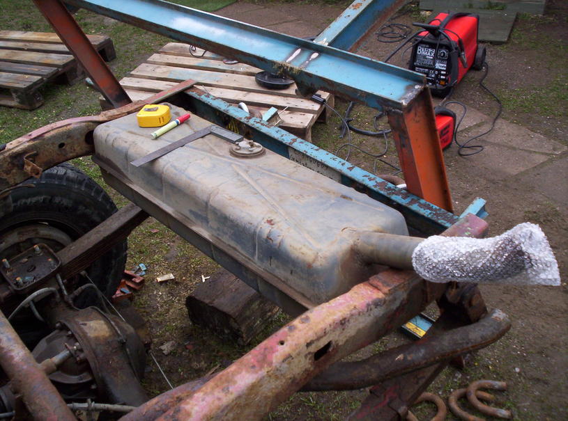 Tämmöst tänää. Kehikko hitsailtu kiinni ja kansi soviteltu siihen päälle. Kannen alle tulee viel paikat akuille ja tankille ja päälle turvakaaret. Löytys töist aika passelin kokonen tankki, vissiin jonku vanhan Skodan