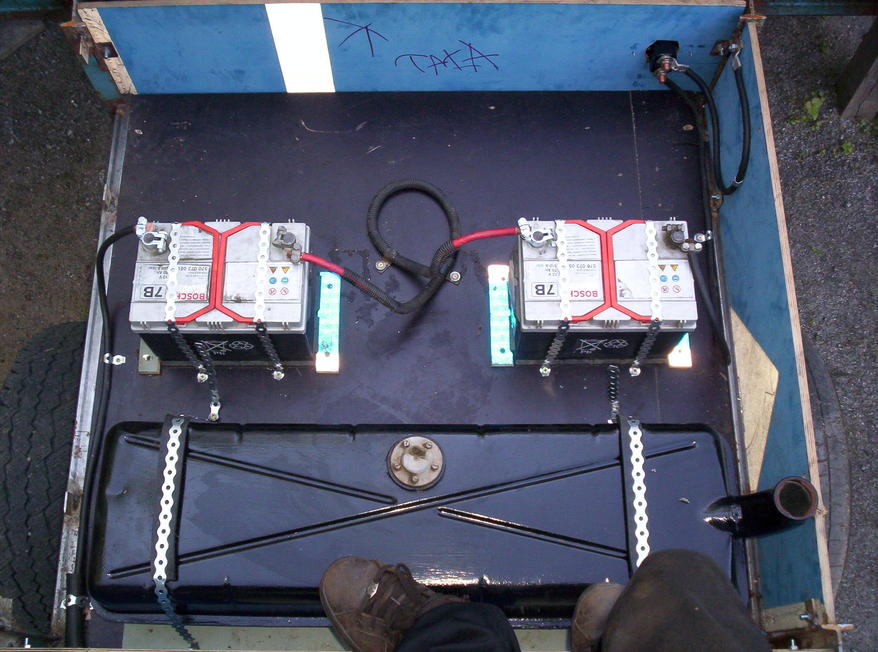 "Lavalle" tuli tankki ja akut. Polttoainelinja ja sähköt vedettii hytin läpi muovisten vesiputkien sisällä (kummallekkin oma putki ettei käy hassusti ) ja jarruputket tullaan viel viemään hytin läpi ni ei jää risuille revittävää niin paljoo