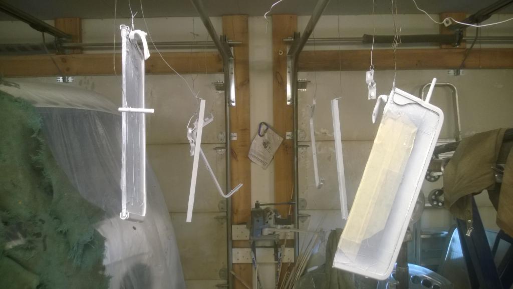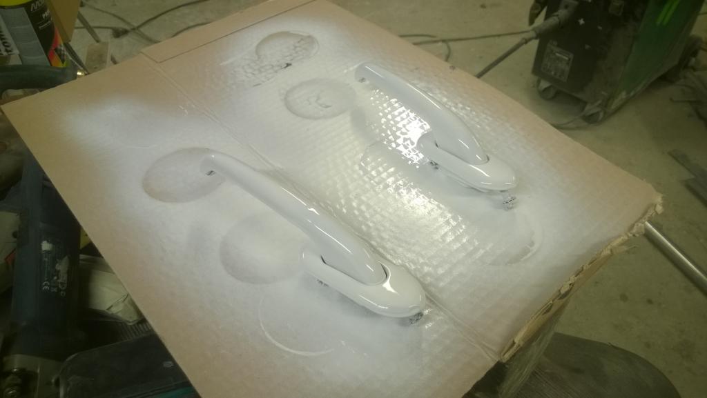 Pikku hiljaa osat putsautuu ja saa uudet maalit pintaan. Kohta olis ovien kaikki osat ja lamppujen kaikki osat puhallettu