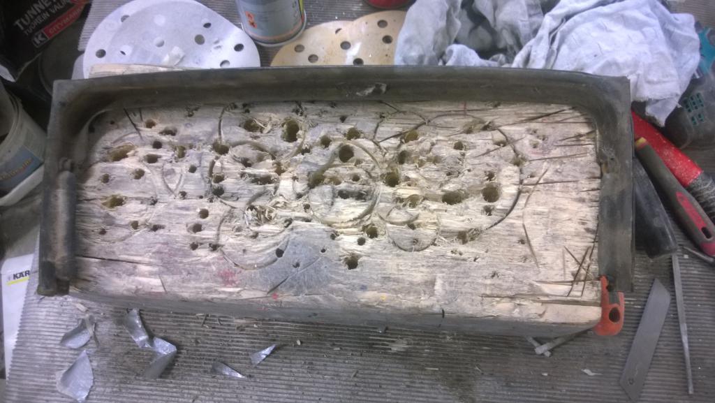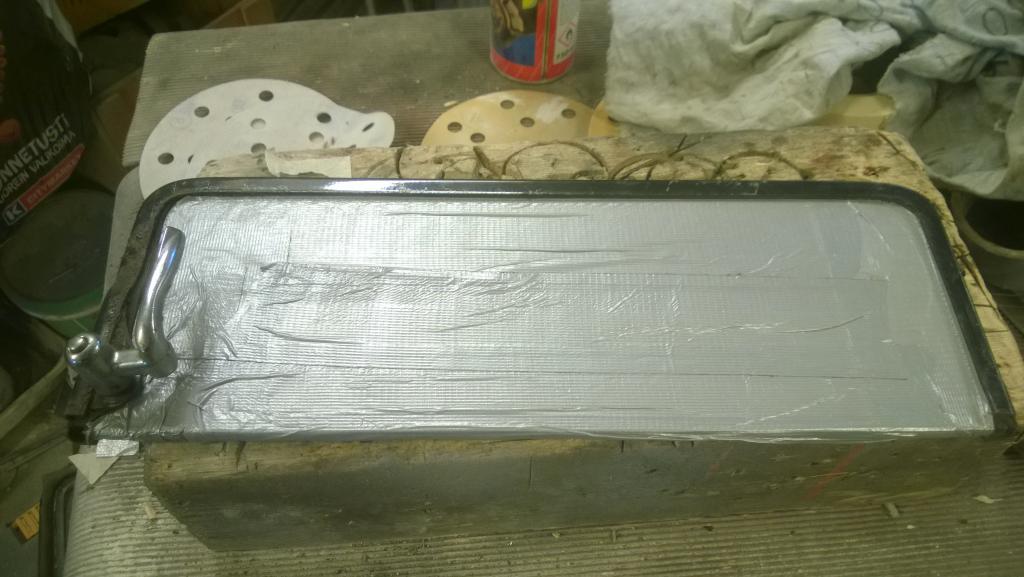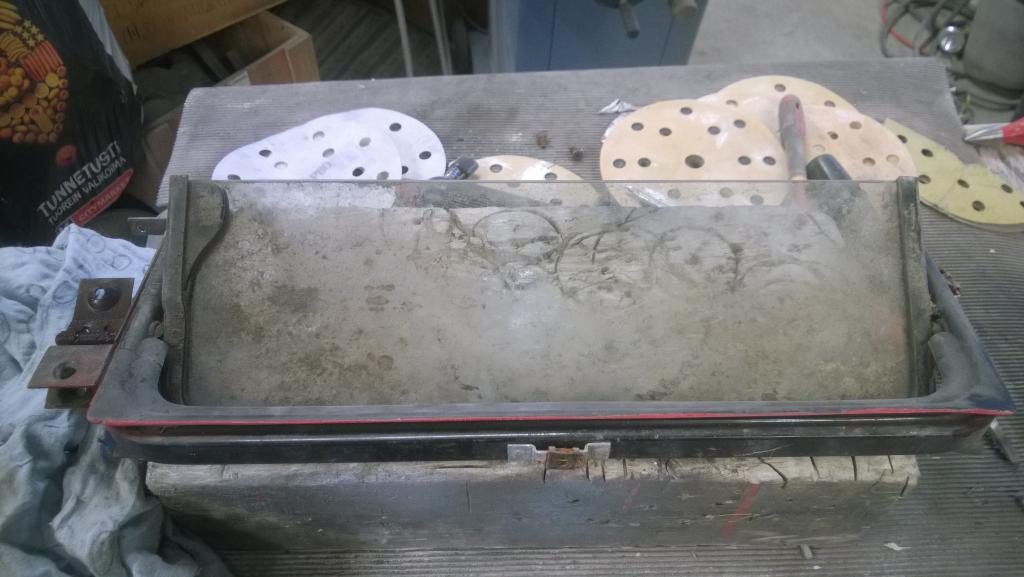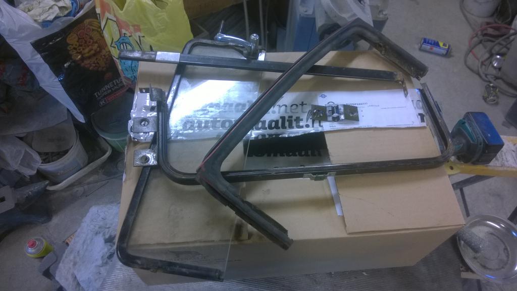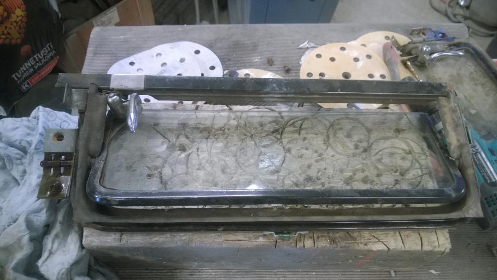 Jos sitä torstaina puhaltelis ovien ikkuna- ja lukkomekanismeista ruosteet pois niin nekin voi kevyesti maalata ja rasvata. Samalla vois ruveta pisteleen pintaväriä noihin lamppujen osiin ja ovienkahvoihin. Pitäs ettiä Oulun seudulta joku autolasi firma ja käydä leikkauttamassa nuo suorat lasit eli taka- ja sivulasit valmiiks. Lipponen löytyy ainakin, onko kellään kokemusta jostain harrastajaystävällisestä firmasta? |
