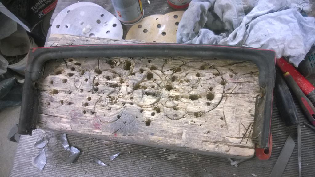 Vielä yks uus tiiviste paikoilleenniin saa kasata nuokin odottelemaan ovia. Vaihdekeppi ja käsijarrukahva vaatii vähän hellää huolenpitoa ennen maalia. Vanteet sain puhalluksesta tänään, ensin meinasin ruveta hifistelemään happomaaleilla ja muilla ruiskumaaleilla mutta sitten päädyinkin sutasemaan perinteisen miranolin pensselillä pintaan Eiköhän tuo väri sen verran pysy kutarttee, oli sen verran hyvin puhalletut vanteet, kiitokset vain puhaltajalle. |