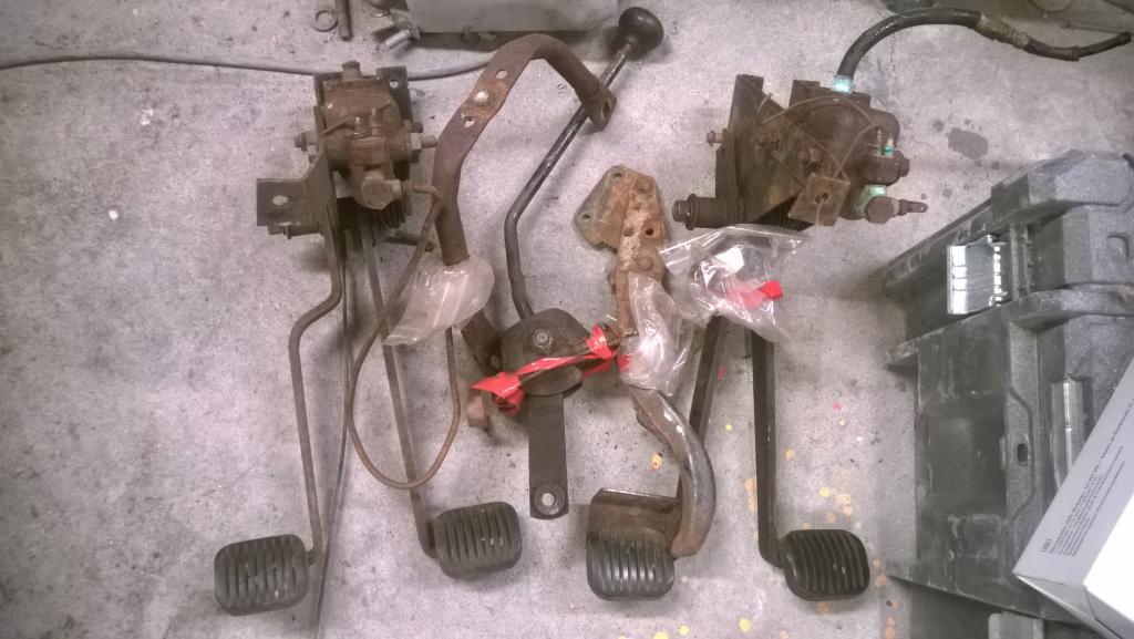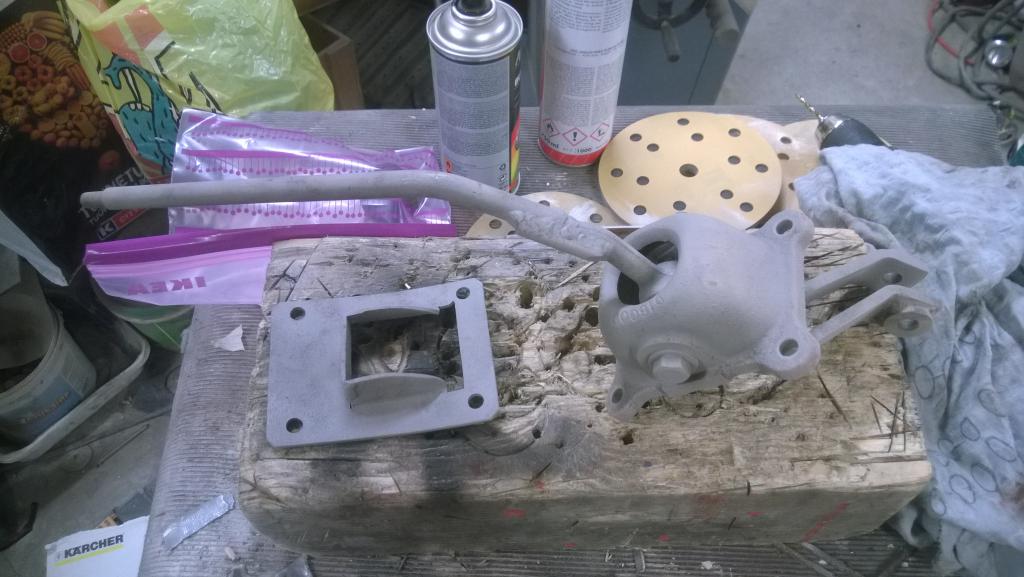Tänään purin nuo ovien pikkuikkunat osiksi, hiekkapuhalsin ja pohjamaalasin ne, samoten vetasin värin pintaan. Toinen tiiviste tuosta ikkunasta vaihtuu uuteen mutta tuon toisen hinkkasin puhtaaksi ja suihkasin pintaan bumper sparyn eli maalin joka on tarkotettu elastiseen puskuriin, sen mitä tuossa noita taivuttelin hyvin pysyy maali kiinni. Nyt pitäs alkaa olemaan kaikki ovien osat valmiina kasaukseen kunhan saa koriin maalit päälle. Varastosta tuli myös haettua seuraavat osat mitkä menee työn alle: Käsijarrukahva, vaihdekeppi ja rattiputken tuki pitää puhaltaa ja maalata. Noista kahdesta poljinsetistä pitää tekasta se tupla-pääsylinteriversio joka pitää sitten myös puhaltaa ja maalata. |