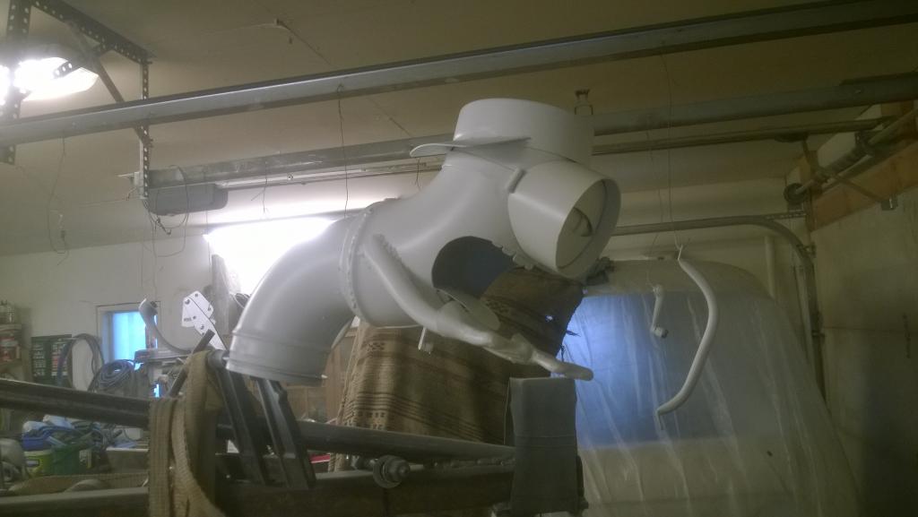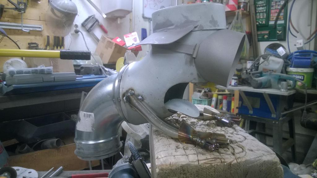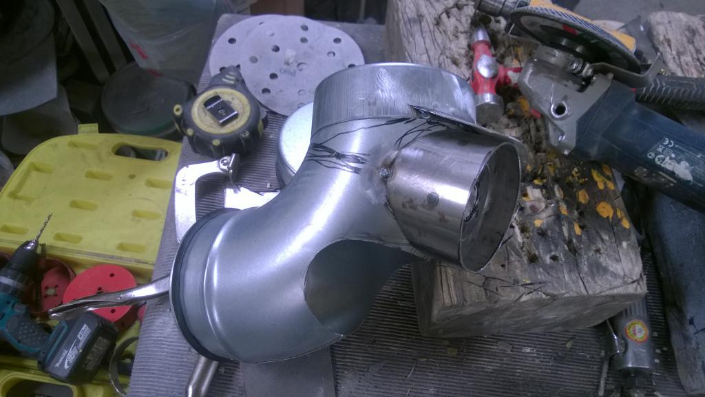 kattoon sitten paikoillaan. Tämän jatkoks toinen, pienempi 90 asteen kulma jolla tämä yhdistetään sitten siihen pystysuoraan putkeen
