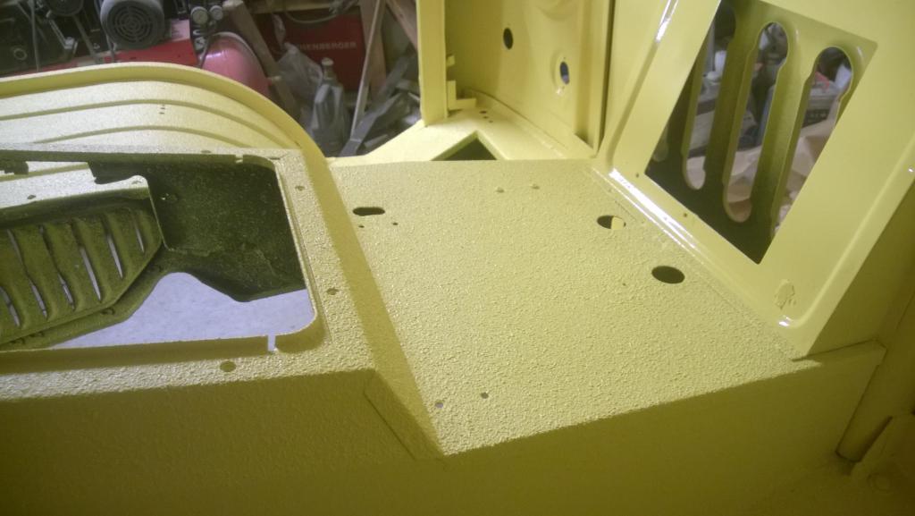 Päivä meni eri osia hiekkapuhallellessa, putsatessa, pohjamaalatessa ja maalatessa. Niin ja tulihan tuohon kojelautaankin