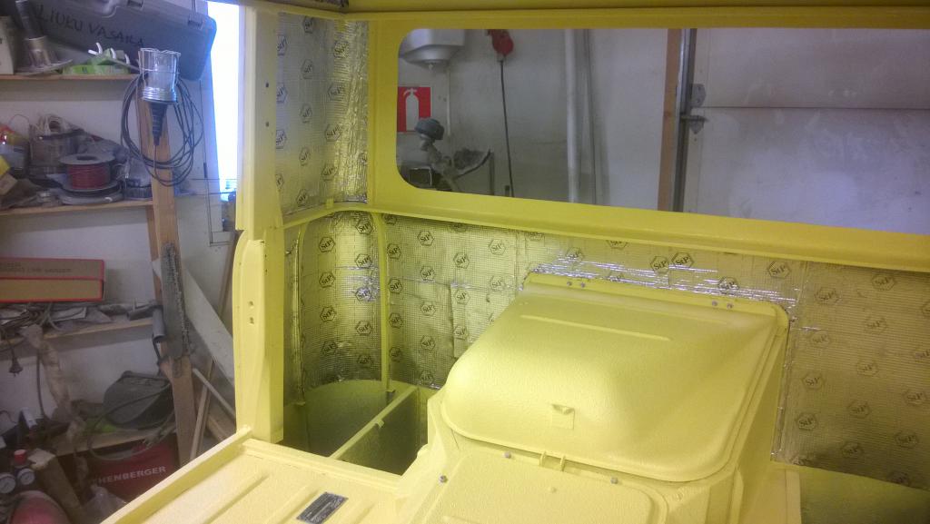 Poljinsetti ja jako- ja vaihdelaatikon vivustot olis maalattu. Ovien veivien ja kahvojen kumit ruiskattu bumper sprayllä. Ovien ja