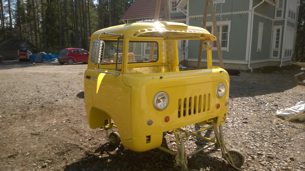 Sitten rouvan kanssa vanha etulasi paikoilleen jotta näkee miten istuu ruostekorjausten jälkeen ja saa kopan sisäosat säältä suojaan. Iltapäivästä keikka Biltemaan hakemaan toinenkin ketjutalja, virittelin nostolaitteen tikkaista ja irrotin ovet korista. Sitten vain koppa ylös, runko alle ja koppa alas. Vaiheiden välissä korinkorotuspalikoiden tekoa, jne. Illasta sitten piti vielä sovittaa tuota armeijan boksia sille suunnitellulle paikalle, katotaan miten sopii kun sille jonkun telineen tekasen... Mutta nyt on tyytyväinen olo, koppa rungolla ja pääsi näkemään miltä tuo projekti rupeaa kokonaisena näyttämään ![]() Vielä on mahoton lista tehtävistä jutuista mutta pikku hiljaa... |