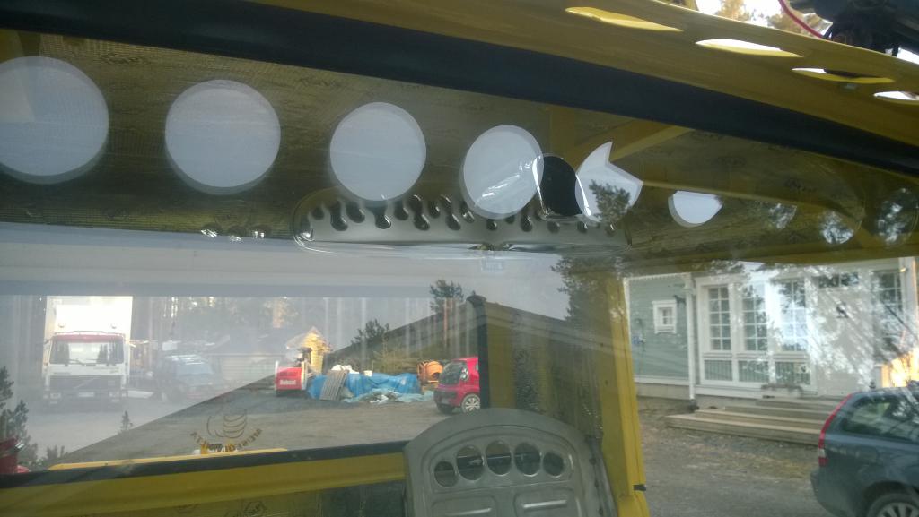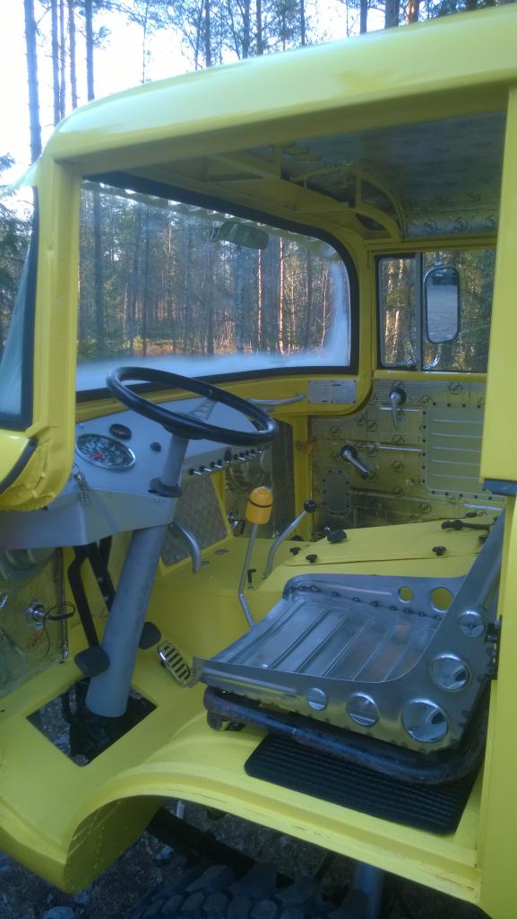 Peitelevyt ruuvasin vanhan lämppärin letkujen läpivienteihin, postipoika toi uudet Ranchot niin ne meni paikoilleen, kytkimen linkit ois paikoillaan eli kun kopan nostaa rungolle -> polkimesta vaijeri kiinni tuohon linkkiin ja kytkin pelaa taas, ovien lukkojen reiät peitin lukoilla , pulttasin työvalon eteen paikoilleen ja nyt kuskin ovessa on myös rajoitin paikoillaan.Jos sitä huomenna kattos saisko tuon simpukan kiinnikkeen muokattua ite ilman että tarttee viedä koneistajalle, laittas vanhan etulasin väliaikaisesti paikoilleen ja ehkä nostas korin rungolle jos saa tuon simpukan kiinni. |