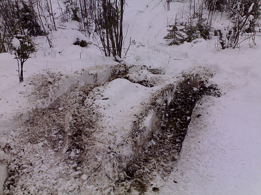 No huh huh ! Olipas työläs reissu. Liukasta oli että niin, että meillä kaikilla oli niin mukavaa. Ja kauhean syviä ojia ja monttuja ja puteroita oli joku käynyt reitille kaivamassa.Minulta ainakin tais särkyä mustasta jotakin oikealta edestä. Rupesi ääntämään oudosti ratti oikeaan käännettynä tappiin asti. Ja kyllä näyttää ketjut olevan kova sana, ainakin kun on piikit ketjuissa. Kyllä talvioffailu on melkosta liukastelua. Keli oli kyllä varmaan se kaikkein liukkain mahdollinen. Vitilunta, joka painuu heti renkaan alla kovaksi ja on sen jälkeen kuin jäätiköllä ajaisi. Mutta keikka heitettiin ja makkarat paisteltiin laavulla. Koirakin tykkäsi, oli mukana veikeä pikkutyttö offaamassa.