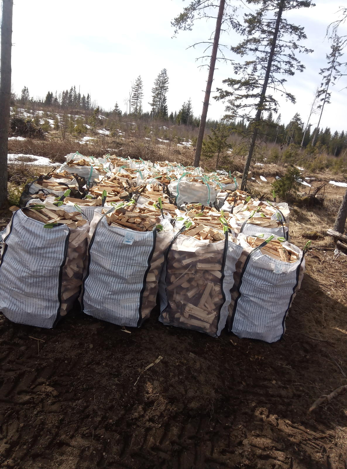 Älä laita tuollaista. Joku maasta vieraantunut yksilö saattaa oikeasti luulla, että noiden klapipussien täyttämiseksi on tehty tuollainen aukko metsään.