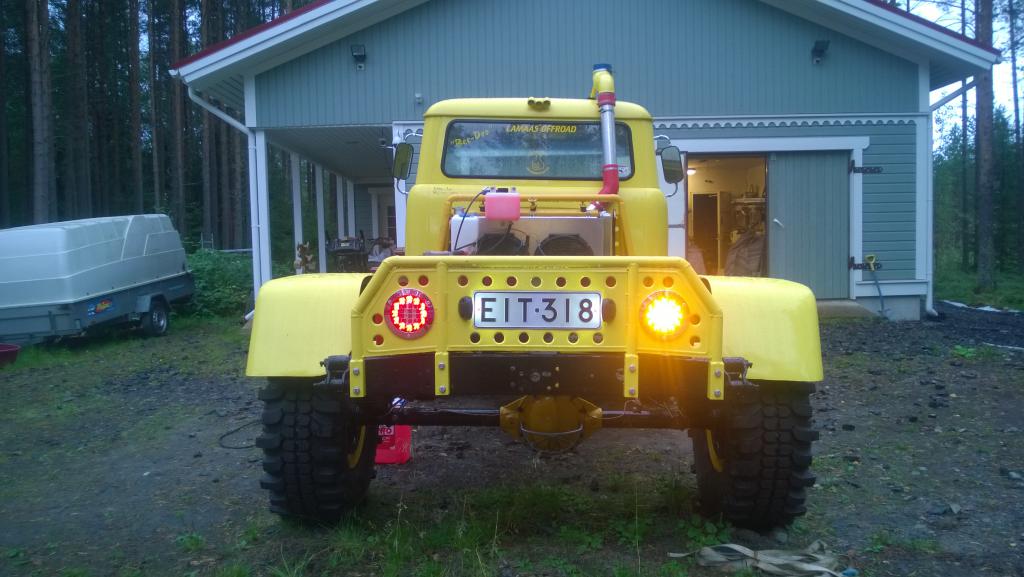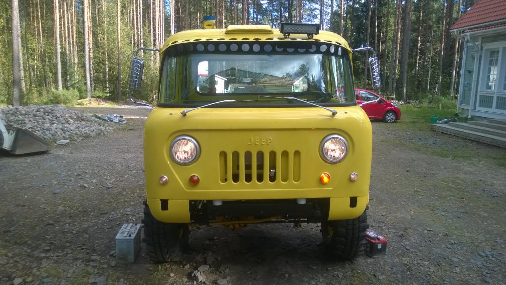"Bee-Doo" eli Jeep Willys Overland FC-170H vm-61 & Jupiter vm-67Nyt kun tämä siirtyi Jeeperiltä minulle niin perustetaan kokonaan uusi projekti threadi. Eli tuli hommattua pihaan Jeep Willys-Overland FC-170H vm-61. Nykyinen tekniikka: - moottori 226cid L6 "Super hurricane" - T90 + Dana 18 - akselit Dana44 ja Dana53, 4.88 välityksillä, ilm. ei lukkoja - > kokonaivälitys luokkaa 33 ja risat... ![]() - kokonaispaino 3700kg ja omapaino 1960kg, ei mikään mahottoman painava, kuorkin papereilla Ajatus olis noin niinku suurinpiirtein että korin 'entisöis', runkoa muokattas vain hieman ja loput eli tekniikka, alusta, jne. tehtäs maastoon eli ihan mitä vain tarttee. Tavote olis rekisteröidä N2G:ksi eli maatokuorma-autoks. Jotain alustavaa listaa isommista tekemisistä: - korin ruostekorjaukset, jne. - nykyisen lavan ja muiden 'ylimääräisten' osien hävitys - rungon lyhennys, puhallus ja maalaus - akselit pitänee vaihtaa sellasiin mihin saa vähän paremmin lukot (Dana60? 14bolt?) - moottori ja laatikot pitänee vaihtaa myös jos aikoo saada tuota kokonaisvälitystä paremmaks... - 6V sähköt ? tekastaan uusiks 12V ja uusilla piuhoilla - jos pientä korotusta ja isompia renkaitakin jossain vaiheessa - kaikki paino mitä vain pystyy siirretään taakse kompensoimaan keulan painoa eli kisakuutio, akut, vinssit, syyläri, jne. menee uuden lavan takaosaan - ohjaustehostin + hydroassari nykyisen tehotamattoman tilalle - uus kevyempi ja kätevämpi lava - ... Pikku hiljaa tässä sunnitellaan eli ei ihan heti tule tämä valmistumaan