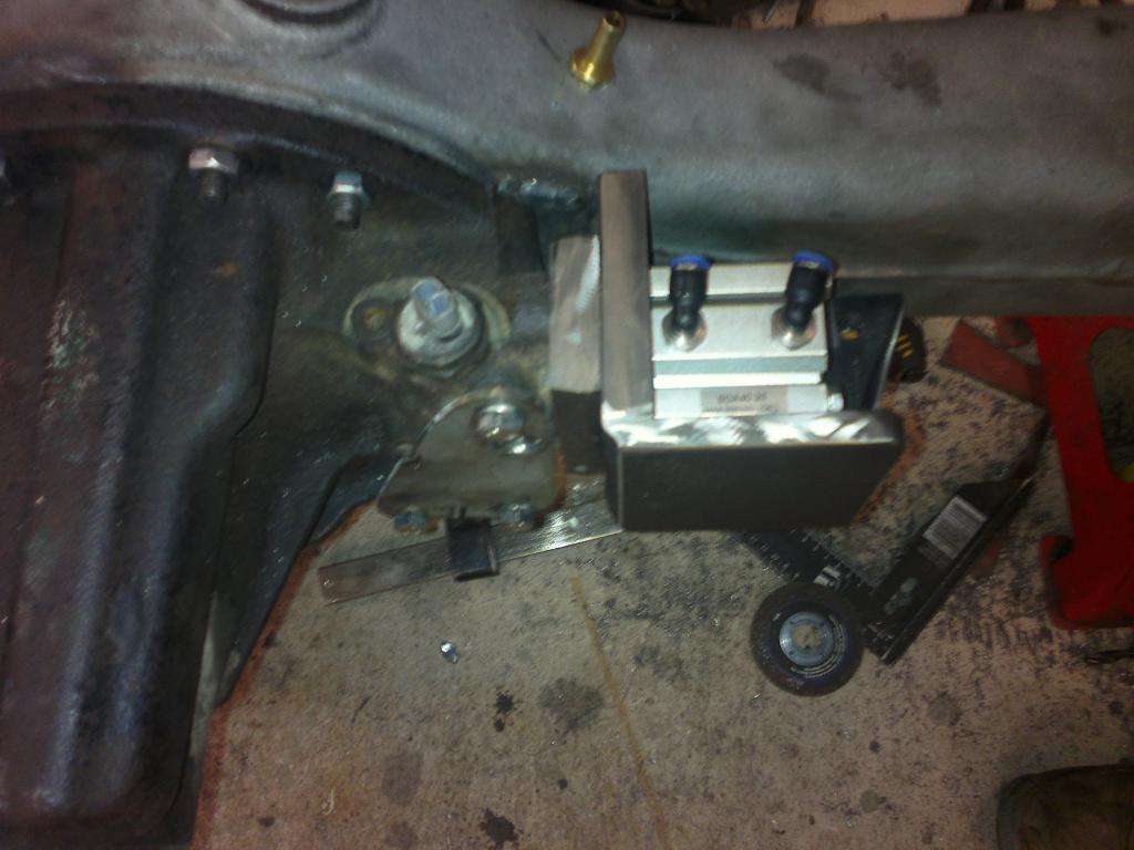 ![]() Postipoika oli saanu sylkyt ja solenoidit raahattua HongKongista asti tänne korpeen eli näistä pitäs rakennella noiden lukkojen ohjaus: Pitihän se heti vähän mallailla paikoilleen, tuohon 15mm raudasta laippa perän ja sylkyn väliin + suoja ettei kivet ja kannot murjo ja sylkyn männän kun liittää lukon haarukan akseliin -> pitäs pelata paineilmalla... Sitten vain ylimääräset reiät umpeen peltilaipoilla ja letkut paikoilleen ![]() |