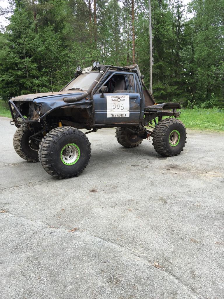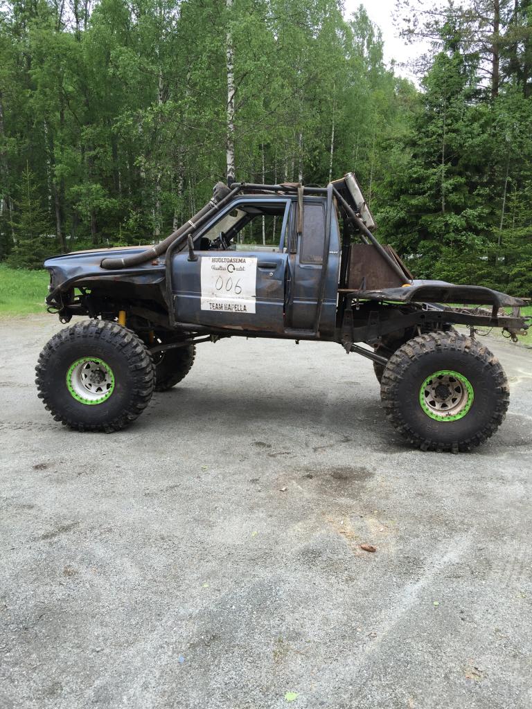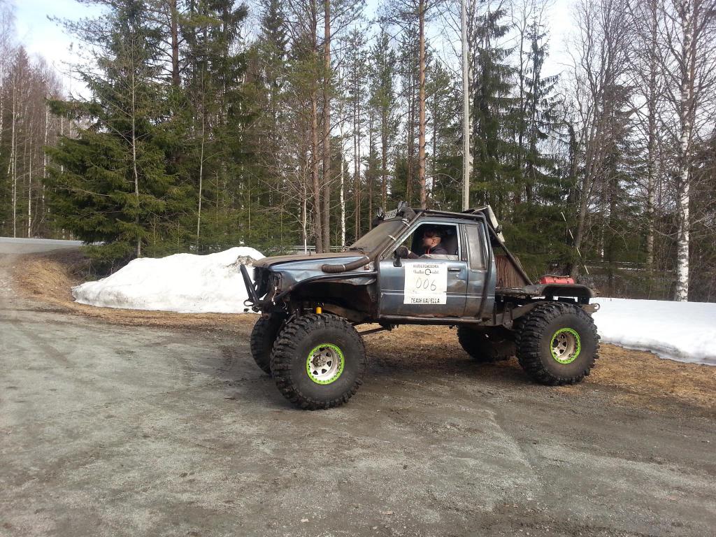 Tulipa käytyä viime viikonloppuna Juuassa keräilemässä vanhoja TML-trophyn rasteja pois metsästä. Hilux toimi ja kulki hyvin. Jouston rajoittimet seuravaksieteen ja taakse niin loppuu ylimääräinen jousten karkailu