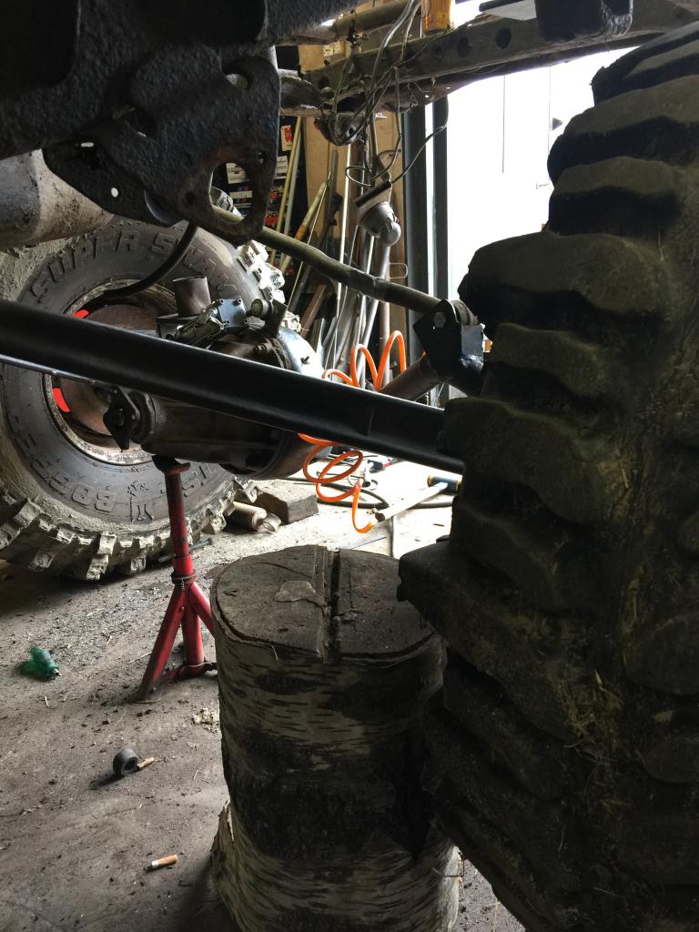 Hiluxin vakio 8" akselit koeponnistettu 39,5" boggereilla. Isoryn pikkujoulu ajoissa naureskellen kaikki kertoivat ettei akselit kestä
