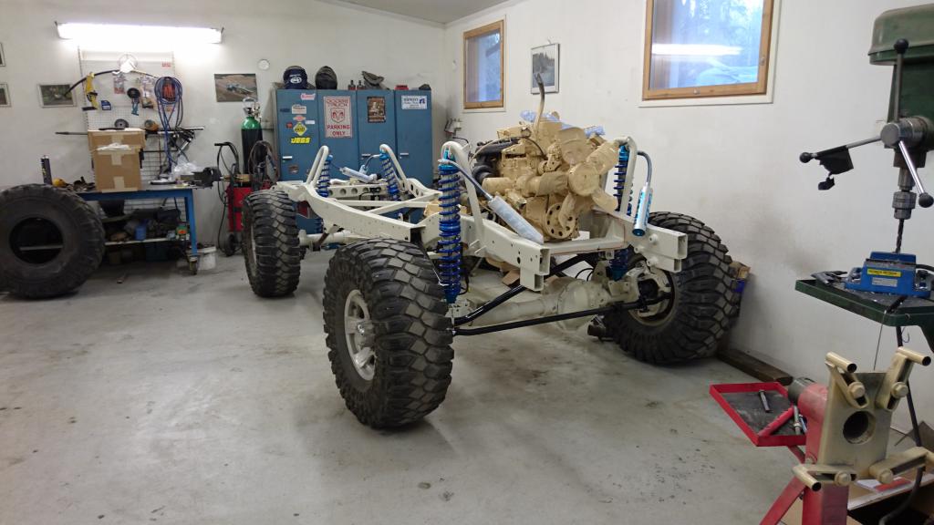![]() Sain vaan ährättyä korin rungolle ilman nostoapua. Tai ainakin 2cm päähän. ![]() ![]() Meinaa tulla runko vastaan. Joudun paria korvaketta modaamaan vielä ja 2cm korokkeet muihin jotta ei osu runko lattiaan takaakselin kohdalla. Korin korotusta tulee maltilliset 3cm sitten. ![]() Hieman joutu pakoputkelle tekee tilaa (se oli kyllä tiedossa ei vaan osannu erillään tehdä pattia) se mikä tuli yllätyksenä oli että tulipeltiin joudun reilun sentin patin tekemään ettei venttiilinkoppa hankaa. Onneksi on sisäänjoustoa niin sai alustan pujahtamaan noin sievästi alle ![]() ![]() Kuvissa ei vielä painoa alustalla eli jousitus lähes yläasennossa. Reilut 10cm tosta pitäs painua. Sais nyt kannakkeet kohdilleen niin pääsis hallintalaitteita, kiskoja, penkkejä ja vöitä sovittelee. |