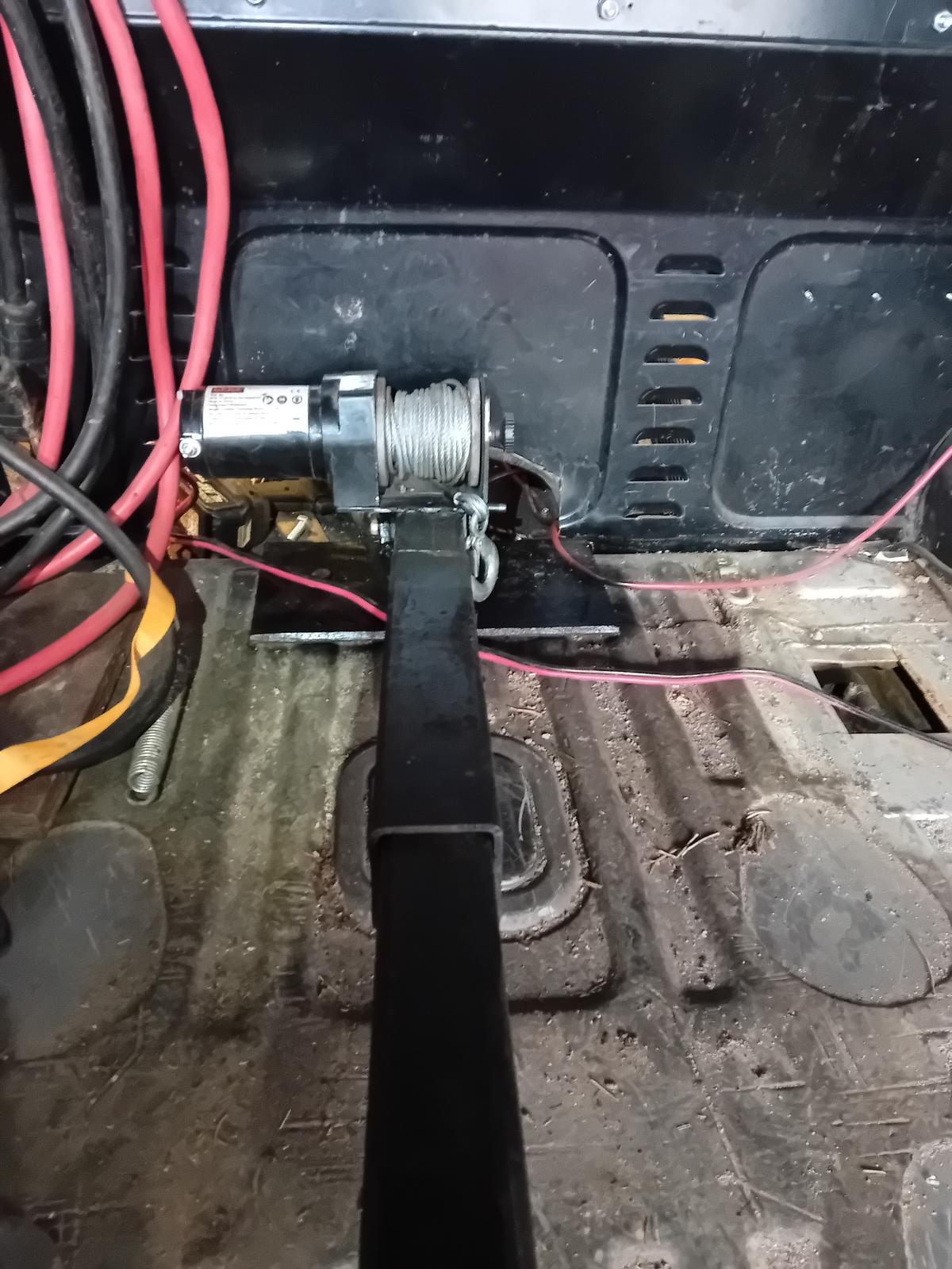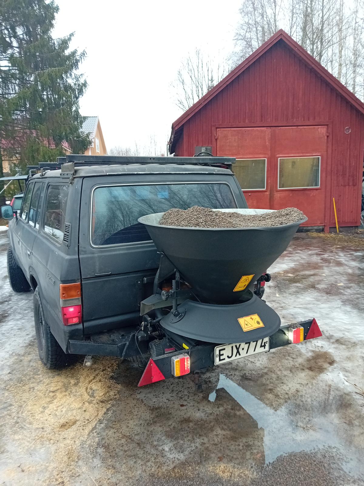 Yksi kuupallinen riittää kilometriin pikkutietä. Vinssin takia alakiinnikkeet tulee niin ylös että koukut menee alaluukun läpi kun se laitetaan vaaka-asentoon.