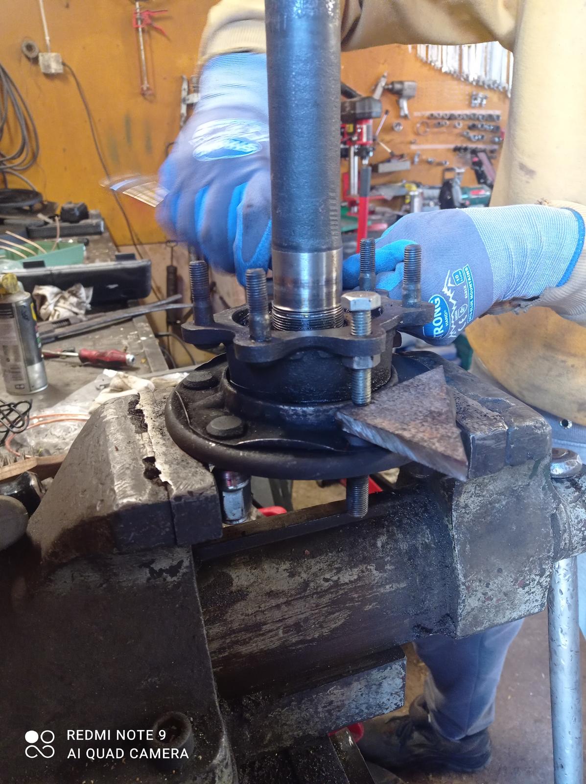 Tuommonen erikoistyökalu tuli tehtyä että sai sen mutterin irti. Oli tosiaan aluksi tiukka sen vaurioituneen kierteen takia. Ihmeen hyvän toi pikkuveli siitä sai vielä tehtyä. Käsineen sai helposti pyöriteltyä mutterin paikalleen.
