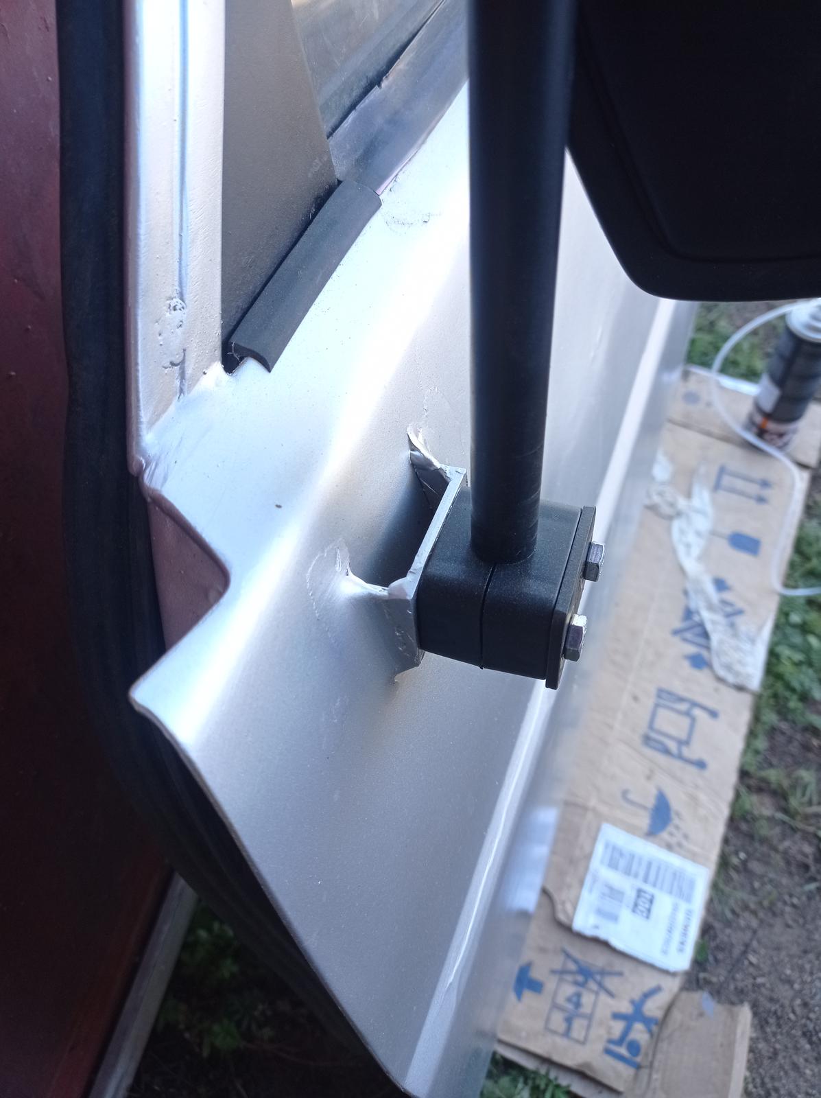 Peilin kiinnityksen tein itse hydrauliputki kannakkeesta ja huonekaluputkesta, mutta näin jälkikäteen olisi pitänyt tilata joku tarvike peili kiinnikkeineen. Olisi tullut helpommaksi ja halvemmaksi...