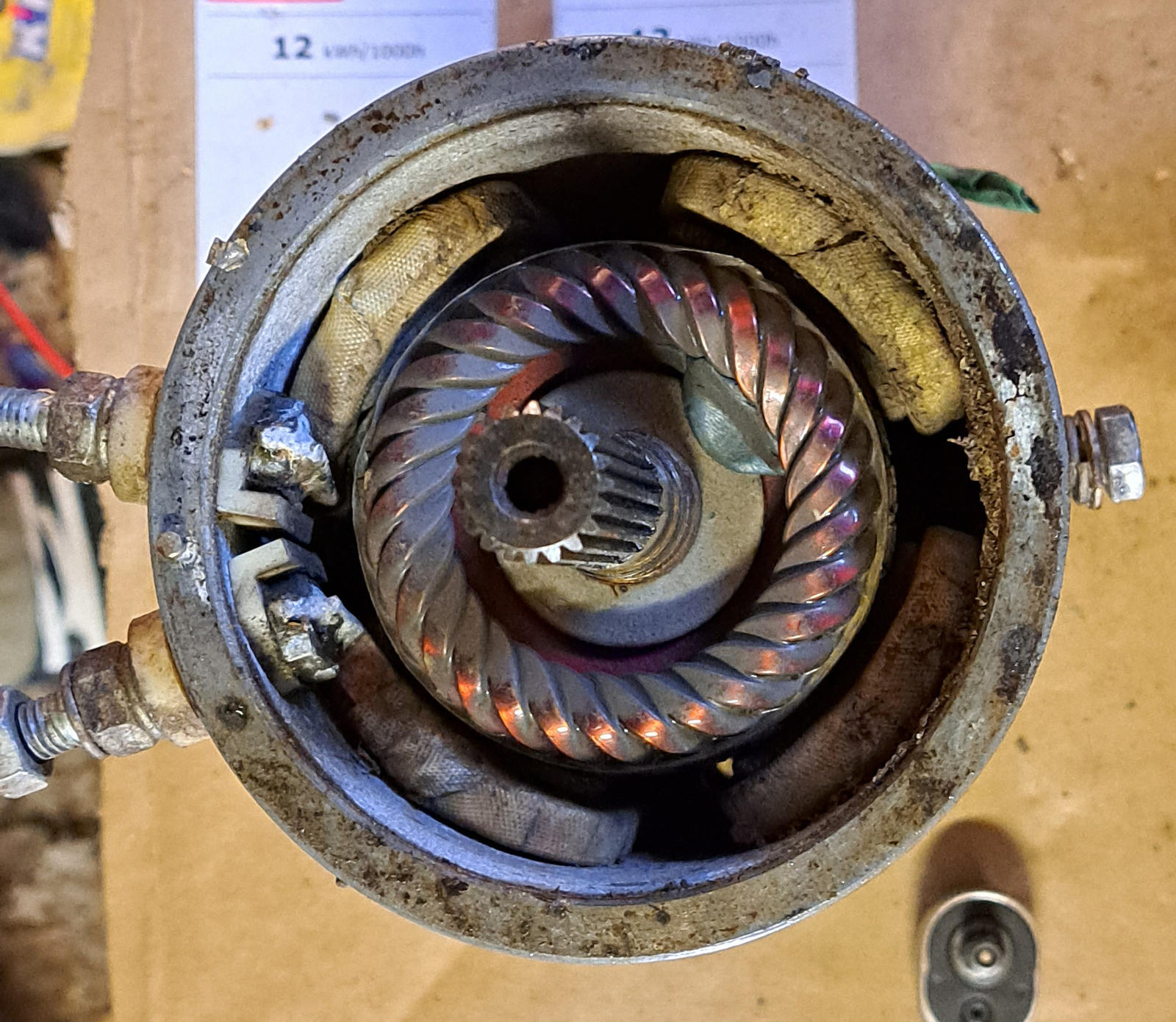 Ottaa vaan moottorin auki ja tarkistaa hiilien ja laakereiden kunnon. Saattaa vanha olla kunnostettuna varmempi peli kuin kiinalainen uutena.