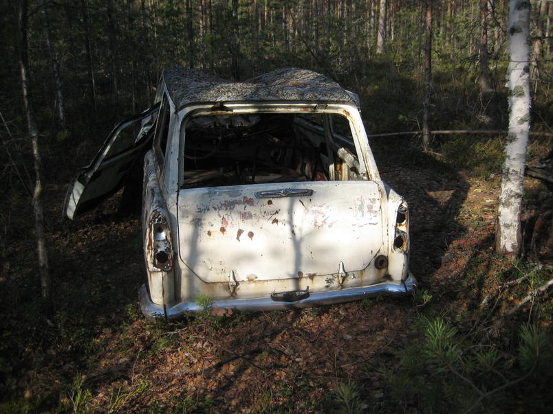Sit jossain peräkylillä ajeltiin ja siel oli Anglia metässä, luodinreikiä näytti olleen ja kirveelläki oli lyöty, sääliks kävi... Nii ja kotipaikalla läheisellä sorakuopalla on pari pulkkasaabia ja joku muu ja sit perämetäs rajan pinnassa on joku Taunus vai mikähän se oli.... Sit yhen hylätyn talon takana pellon reunassa on joku iha maatunu raato ja toine on Taunus Viimeksi muokannut Hanna : 06.05.2011 21:56 |