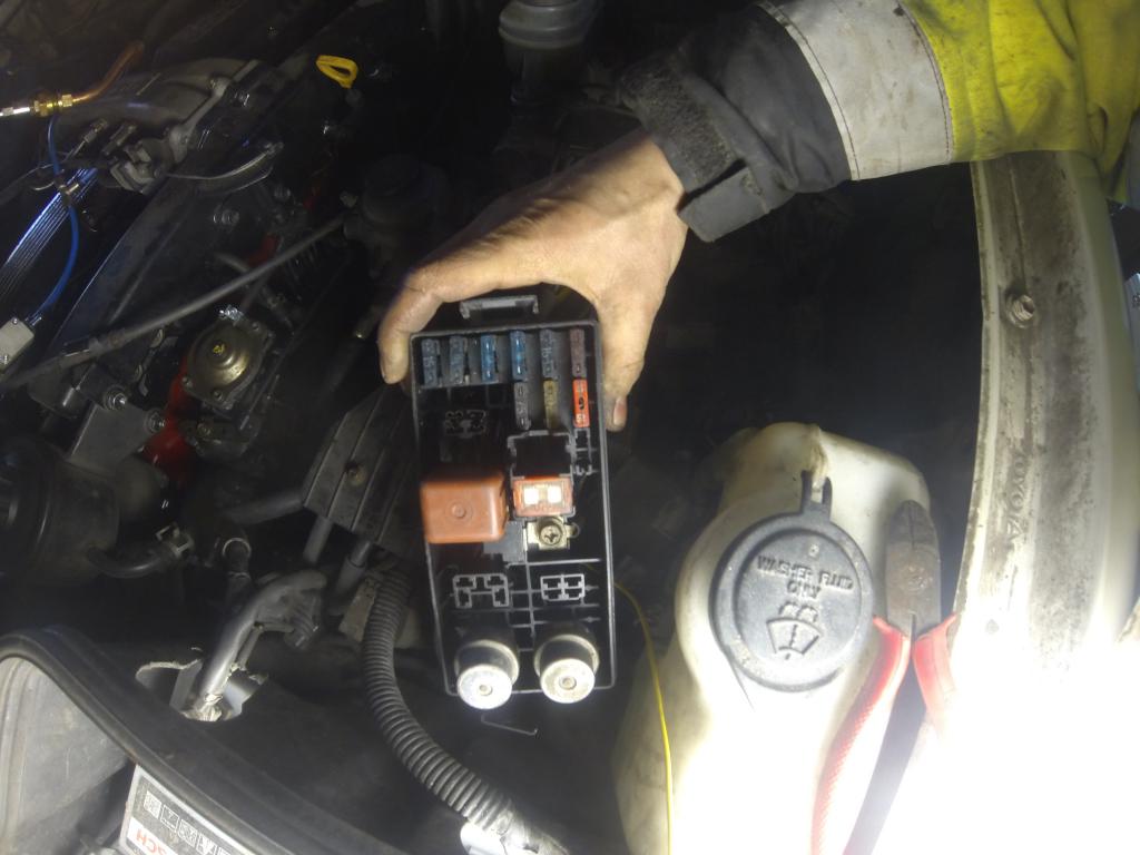 Toi valonvaihtoreleen palaminen aiheutti hetken päänvaivaa, kun edellinen omistaja oli korvannut sen katkaisijalla. Rele oli palaessaan polttanut oman pohjansa, parin sulakkeen pohjat ja ohjauspiuhaa jonnekkin näkymättömiin asti, sekä ilmeisesti myös vaihtoviiksen sisuskalut. Mielenkiintoisia kytkentöjäkin ratin alta löytyi, kun sain sulakerasian ja releen kytkettyä, valot eivät sammuseen enää ollenkaan. Tuosta ylimääräisestä johtosarjasta löysin sopivan releen ja mototetistä sulakerasian ja vähän liittimiä. Ohjausjohdon vedin uusiksi kojetaulun alle asti ja vaihdoin uuden viiksihässäkän ja siitä rosvolla ohjaus. Ja zadaa, meillä on (normaalilla tavalla viiksestä) toimivat valot!!