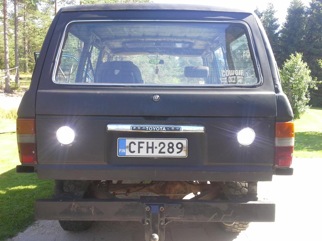 Toyota original vinssi on saatu keulille. Pystyy tempomaan nelosella lappu lattiassa ilman ravistuksia tai paukutuksia. Peruutusvalot sain kans kytkettyä, alkaa aamut ja illat olla pimeitä jo. Auton omat ei syty lainkaan, mutta eipä niillä mitään virkaakaan ole. Ei niillä tahdo nähdä tielläkään mitään, pimeästä ja märästä metsästä puhumattakaan. Mulla niistä nyt mitää kuvia ole, mutta kaikki tietää miltä Motonetin pyöreät työvalot näyttää.