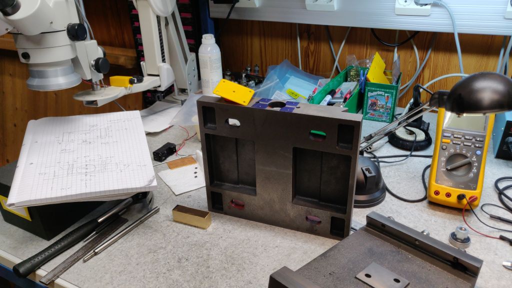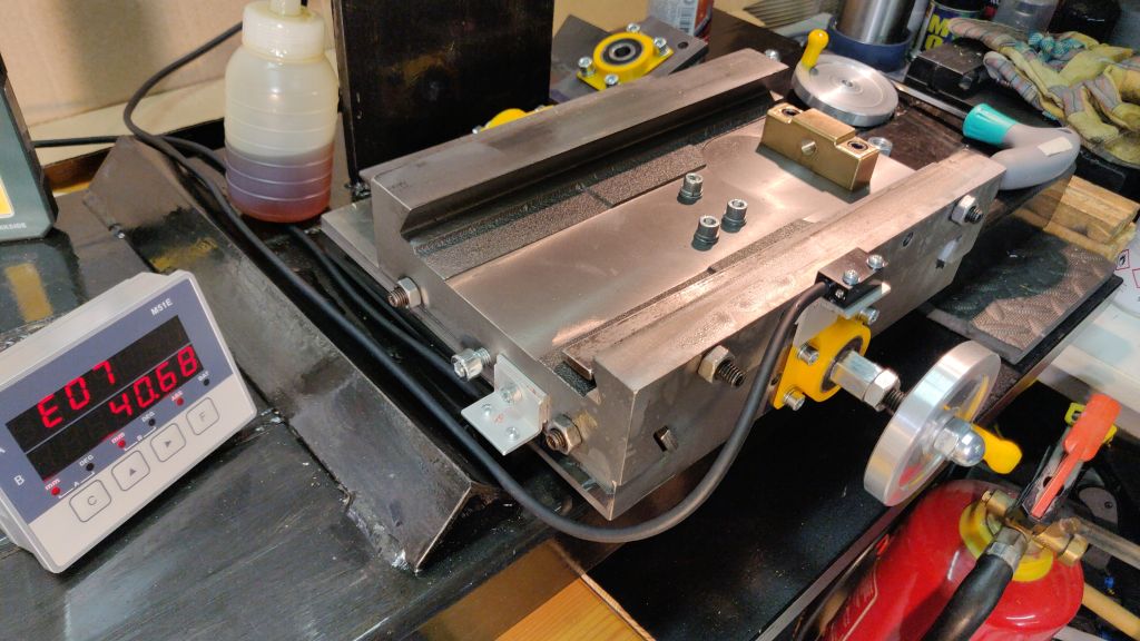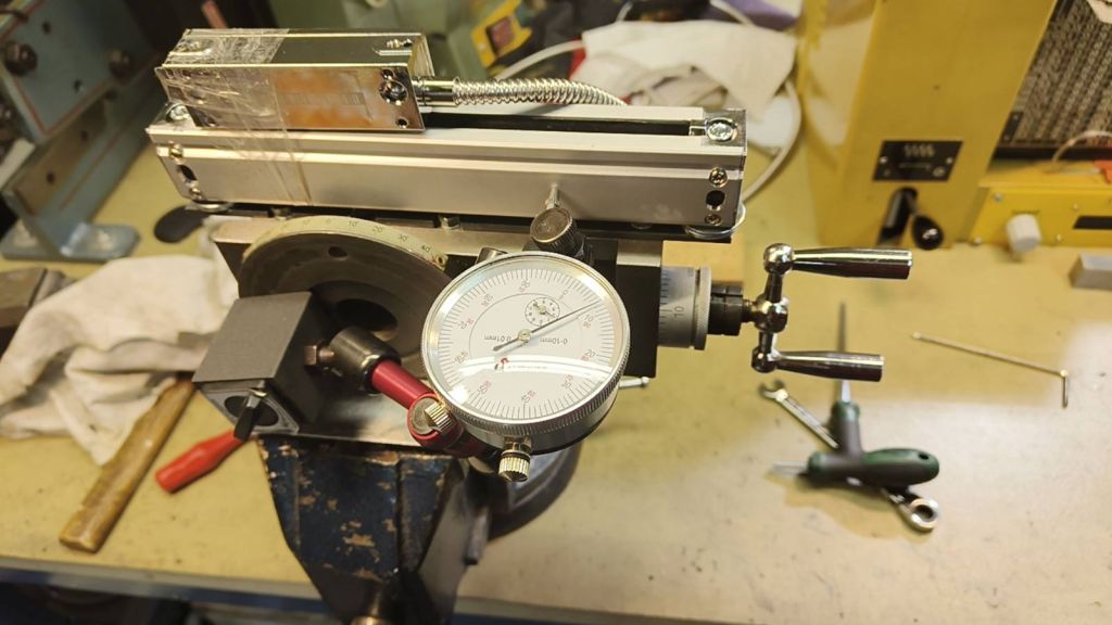 ![]() Lähinnä tutustumismielessä tuli hankittua M51E magneettinauha-antureihin perustuva halpa DRO. Houkuttelevaa tässä kiinan ihmeessä on tietysti hinta ja asennuksen helppous. Hinta 80,- :n luokkaa ostopaikasta riippuen. Magnetoitua anturinauhaa saa metritavarana. Kiinitys tapahtuu tarranauhalla ja päälle liimataan vielä rosterista oleva suojanauha. Itse anturit ovat 26x15x9mm pulikat mitkä voi taiteilijan vapaudella asentaa noin 1mm etäisyydelle magneettinauhasta. Asennus oli just niin helppo kun oletin. Alumiinista kulmapalat ja pari reikää kierteineen XY pöytään. Ehkä suurin duuni oli rasvaisten valurautaosien putsaus niin, että liima tarttuu. Näytölle syntyi 3D tulostimella kiinityskehys. Voi olla, että käyttökokemuksien jälkeen näyttö hakee itselleen vielä paremman paikan. Ensimmäiset mittauskokeet näyttävät lupaavalta. 100mm matkalla satku heittoa. Pientä epälineaarisuutta näkyy, mutta pitää yutkia tarkemmin tuleeko mekaniikasta vai anturinauhasta. Aika näyttää miten magneettinen anturinauha pärjää teräsputun kanssa. Jos toimintaperiaate kiinostaa niin naputtaa googleen vaikka magnet stripe dro niin lukemista löytyy. https://www.touchdro.com/resources/s.../overview.html Tarkistusmittaukset suoritettu vaaterin kanssa. ![]() |