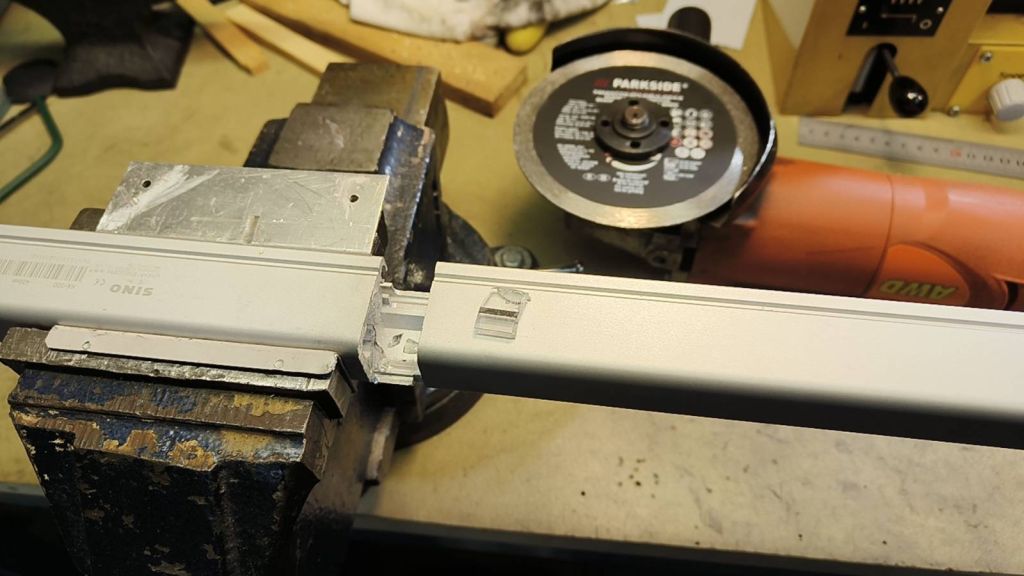 ![]() Alunperin kompoundiin tarkoitettu 200mm tanko sopikin suoraan poikittaiskelkkaan. Ylimääräiseksi jäi 420mm tanko ja kompoundiin tarvitaan 100mm liike. Ei muuta kuin tutkimaan, tuumailemaan ja keräämään rohkeutta tikun katkaisuun. Päädyn kun sai auki (liimattu kiinni) niin pääsi näkemään mittaradan rakenteen. Ensimmäinen havainto, että rakenne poikkeaa muutamista juutuubista löytyvistä lyhennystarinoista. Ei muuta kuin jyrsinkoneella katkaisupaikkaa auki ja samalla päätyä lopulliseen muotoon. Hyötypuolella lasi suojattu ja tuettu niin hyvin kun pystyy. Timanttilaikka rälläkkään ja säätömuuntajalla pyörimään suht pienillä kierroksilla. Varovasti sitten leikkaamaan. Hyötypuoli meni hyvin, jättöpuolelta lohkes hallitsemattomasti, mutta ei kaukaa. Vaikka on "vain" 5um keppi niin onhan tiheä kuvio lasissa. Ei meinaa oma mikroskooppi riittää sen tutkimiseen. Lyhennyshän onnistui. Vähän joutui jyrsinkoneella modaamaan päätykappaletta kun mittasauva ylettyi ihan rungon päähän asti. |