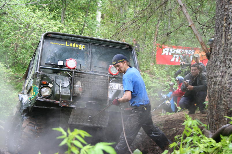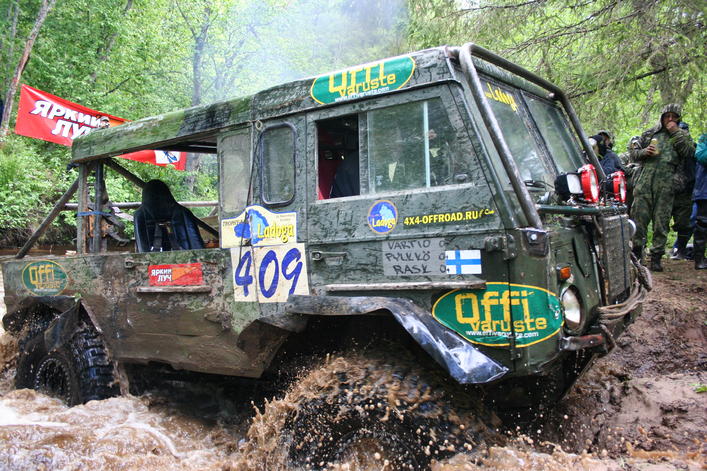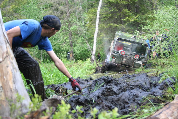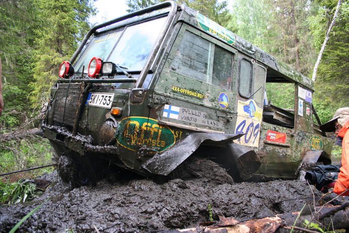 Kattelin tossa ozista että rajan takana tuli kilometrejä 1769. Niistä muutama kymmen jonkun muun auton kyydis. Kisa matka oli ihan mukava jos vesisateita ei oteta huomioon. Alku taas oli tuskaisen helteinen. Itikoitakin oli taas ihan riittämiin ja ekana yönä ne kuppas Tuomon naaman ihan turvoksiin kun nukuttiin lumisuolla taivasalla. Pikkuteltassa niiltä säästyi hyvin ja kun viritti pressun teltan päälle niin pysyi kuivanakin. Kisan vaikein asia katsojan näkökulmasta on päästä katsomaan hyvään paikkaan ja ajallaan. Kun ei oikein ollut lähtöajat ja pätkät tiedossa niin missattiin muutaman hyvä mesta kuten sähkölinja, "hautausmaa" ja pirunpelto(missattiin siis xxx show täysin). Yhdellä pätkällä taas käveltiin varmaan 6 kilsaa suuntaansa hiekkatietä. Joillekkin pätkille taas vedettiin sellasta offia itsekkin että sai muutaman tunnin vinssailla. Yks vaikeus oli kanssa yrittää pysyä kisareiteiltä pois ja varoa ettei blokkaa itseään pätkän varteen. Semmosii pikataivaleita oli tänä vuonna aika paljon ja meno vaikutti nopeuskisalta paris-dakar tyyliin. Ihmetellä täytyy kisan sääntöjä ja tulkintoja. Ekanakin lumisuon pätkällä oli eroavaisuuksia sähköisissä rasteissa, roadbookissa ja pätkäkoordinaateissa. Protesti ei auttanut vaan aikasakot pysyi vaikka osa oli ajanut oikein joidenkin koordinaattien mukaan. Sitten kun rastipistettä pitää käydä vähintään 50m päässä kurkkaamassa niin tästäkin on monta käsitystä. Joskus idea on ollut että pisteiden väliä suoraan 50m levystä kanjonia pitkin. Kuitenkin suoraan kysyttynä on neuvottu että 50m on aika löyhä ja siihen sallitaan gps heitto ja pisteillä pitää käydä oikeassa järjestyksessä mutta niiden välillä voi kiemurrella miten vaan. Vähän kisasa hirvitti kun ainakaan siinä yhdessä brieffissä missä kävin ei puhuttu kuin venäjää. Englanniksi sentään jotain oli ilmoitustaululla mutta muuten aika orpo olo kaiken suhteen. Sitten vielä joku urpo sabotoi Jeziä heittämällä jonkun vanhan tietokonenäytön mousen lasista sisään ja läppärin telakka paskaks. Ei ihme että Jez oli vähän käärmeissään. No tässä oli väjän purkua reissusta. Oikeesti tapahtu niin paljon ja oli monta päivää et vaikee enään laittaa kaikee kasaan mut ehkä kuvista jotain selvii.