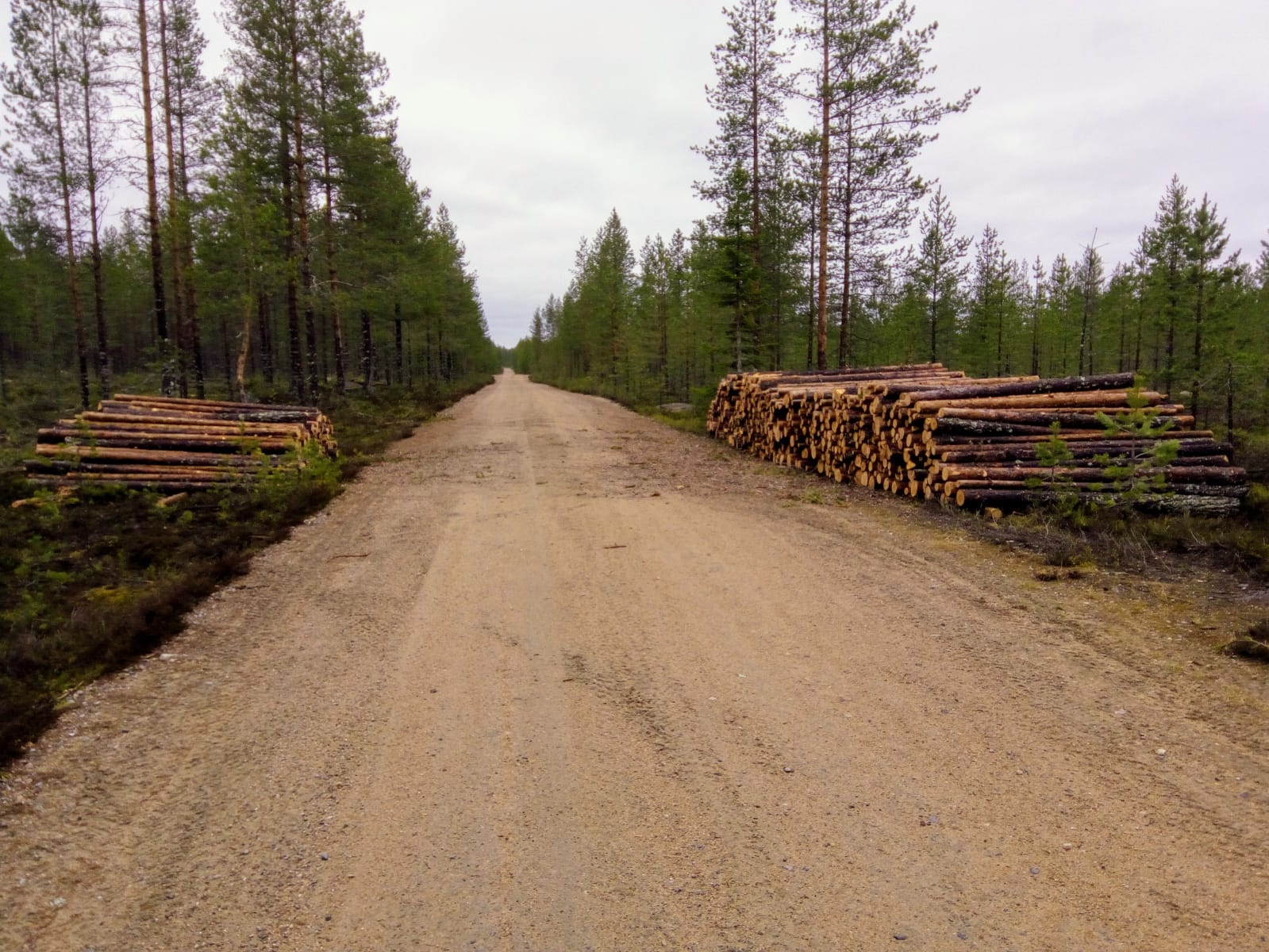 Viimeiset hankintapuut ajettu pinoon odottamaan jatkokuljetusta tehtaalle.