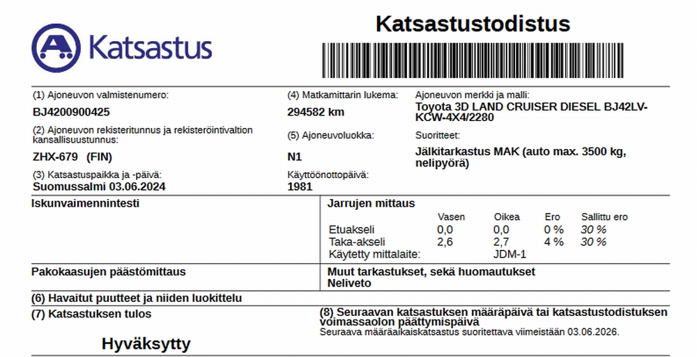 [sekävähän walkthroughta mitäseneteentehtiin...] ekaksi alkuperäinen aisini vaihtoon ja hj-tarvikep*skaa tilalle... seuraavaksi palstalainen Koivunoksan kivijalkamyymälään jotakinsopivaa pullistuneen jarruletkun tilalle hankkimaan... josta mittojenmukaista mercedesbenziä löytyikin... jonkajälkeen kävijuuriniin kuten jarrusaneerauksissa usein tuppaakäymään... elikkäs remontti lähti eskaloitumaan siitä pullistuneesta jarruletkusta eteenkinpäin... alkuperäinen 4/80 leimattu oem-toyota kun oli antanut aikalailla kaikkensa... jonkajälkeen jälleen Koivunoksan helpdeskille... jostatilalle jotakin volvoa... jonkajatkeeksi mercedesbenziä patentpendingillä... jonkajälkeen hiliftillä pakkaa levälleen... uutta kumia a'la Cros4wd... paikoilleenpantuna... jonkajälkeen läheiselle soratielle jarruja dynamoimaan... käkkärikin iskussa kutenkuvastanäkyy... [jokamenikin sitten ihanhukkaan koskapa jälkitarkastuksessa sitä käkkäriä eikämyöskään etuakselia koeponnistettu lainkaan... ]