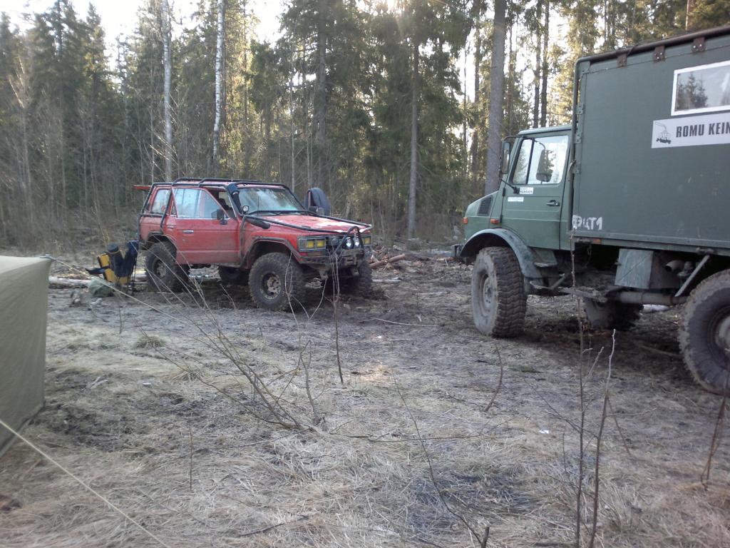 unimogit ajoivat tuon helpon siirtymä reitin joka lähti ekasta leiri paikasta itään,mutta kun painoa on liikaa jäivät joka ikiseen helppoonkin paikkaan kiinni ja lopulta toinen tiukasti (kuulemma 2x hyde vinssiä hyyty)keskelle sitä jokea johon asko kaato susukin ( siis 35" maasturin jälkiä ei mokeilla päässy) ja vinsseissä ei ollu tehoja tarpeeksi.mm.haisuli vinssaili mokkeja irti.lauantaina lähtivät ajelemaa hiekkaiteitä pohjoseen päin eivätkä lähteneet ajamaan mitään offroadia enää mokeilla. itse olin kyllä yllättynyt miten onnettoman huonosti noinkin isoilla renkailla mogit etenee. mutta tämä oli joku testi reissu jotain pitempää matkaa salehardiin 2015 kaiketi??