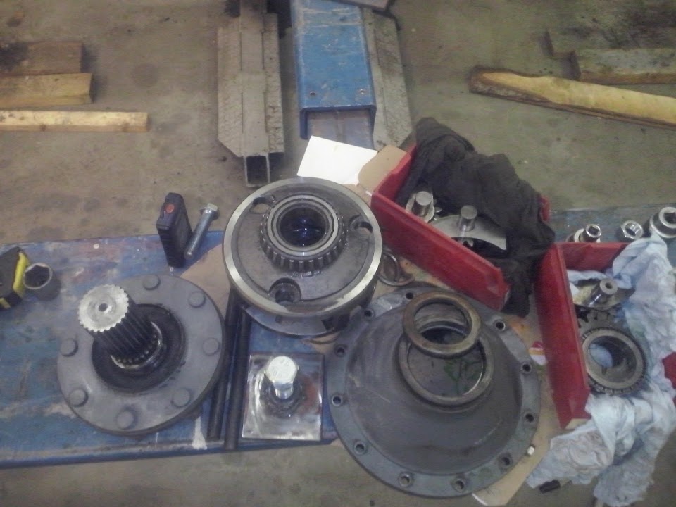 Kaikki on kyllä mahdollista. ``Toivotaan parasta ja pelätään pahinta`` Täytyy lähteä jameksen kimppuun purkamaan paneettipyörästöjä joiden purkamisesta liitän kuvia myöhemmin. Aijemmin tänään kävin tilaamassa uloimmat stefat planeettapyörästöihin ja korkki tiivisteet paikallisesta hankkijasta jamesin varaosakirjan numeroilla. Sisempi stefa jäi viellä epäselväksi koon puolesta ja onko sitä edes olemassa jamesin perässä? Enkä saanut oikein selvää räjäytys kuvastakaan onko siellä sitä. |
