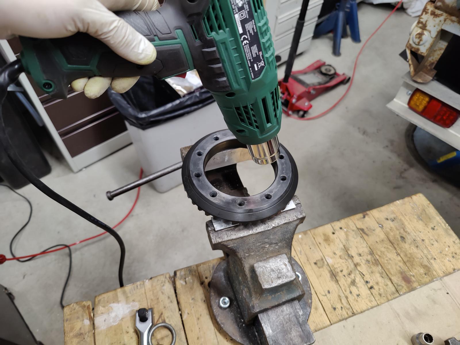 Homma alkoi sillä, että tempaisin kone- ja laatikkopaketin vex. Johtosarjan kääriminen oli jäänyt syystä X viimeistelemättä. Kieputtelin teipit näkyvien irtojohtojen ympäri ja lisäsin muutaman nippusideankkurin, joilla johtosarjan liikkumattomuutta voi varmistaa. Pitkään ollut ilman hytistä toimivaa lämmönsäätöä, kun lämppärin hanalle tuleva kaapeli on saanut vuosien varrella kipiää, eikä liikkunut takeltelematta. Olin sitten ottanut koko kaapelin pois. kaivoin jossain vaiheessa purkuautosta talteen ottamani varaosan ja asentelin takeltelemattoman lämmönsäätökaapelin. Luksusta Samalla säädin hytin puolella ilmaluukkujen asentoja, että ikkunalle puhaltaisi oikeasti. Eli jalkoihin tulevan ilman luukun säädin olevan niin kiinni kuin se suostuu olemaan. Se tuli aika nopeasti todettua, että syylari tuli aikanaan laitettua naftisti liian alas, joten sen kiinnitysten revisiointi oli vuorossa myös. Nooh, ohjausvarren nivel oli väljä ja se oli mulla vaihtolistalla. Sain varren irti ja totesin, että väärällä kartiolla oleva nivel laitettu ![]() Tässä autossa kirjaimellisesti kaikki mihin en ole koskenut itse on jollain tavalla rikki, tai perseellään... Autoon oli jonkun edellisen toimesta laitettu Opelin simpukka Juukan miesten adapterilla. En aikaisemmin olekaan tätä lähemmin käpistellyt, mutta ei tuu ten points tästä laipasta. Simpukka on sen verran killissä, että Suzukin ohjausvarressa oleva rättinivel tekee aika jyrkkää liikettä, omaan silmään liiankin jyrkkää. Vielä hurjempi on täytynyt olla tuo kulmavirhe silloin, kun tässä oli kopan ja rungon välissä ne tosi paksut värinänvaimennuskumit korinkorotussarjana, hengenvaarallisia virityksiä ![]() Ei muuta kuin oma laippa tilalle, jolloin simpukan asento korjautuu niin, että ohjausakseli on jotenkuten linjassa simpukan kanssa ![]() Öljycooleri on ollut listalla, sille intouduin tekemään kiinnikkeet. Dimplet tein Bilteman dimpletyökalulla, jotka ostin pari vuotta sitten kun oli vielä valikoimassa. Tiggeröintiä pitää vielä harjoitella Tässä nyt oli melkein kaikki persiillään, liikaa virtaa, liikaa lisäainetta, paikoin epäpuhtauksia huonosta puhdistuksesta johtuen (sinkkipeltiä), työasento jne...Tuli kyllä topakka kiinnitys, ei heilu ![]() Mahtuu maski hyvin vielä paikalleen. Kilvelle pitää kehittää uusi paikka, kun se oli aiemmin just tuossa öljycoolerin korkeudella maskissa. Kiinnikkeisiin jossain vaiheessa maalia pintaan vielä tietty.