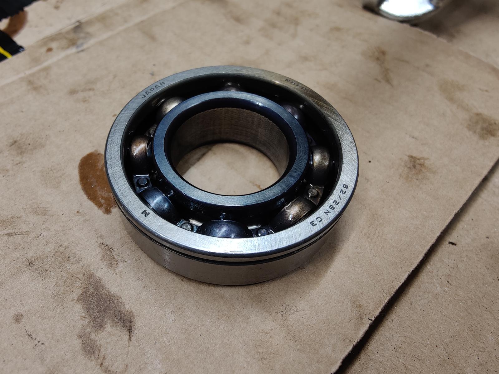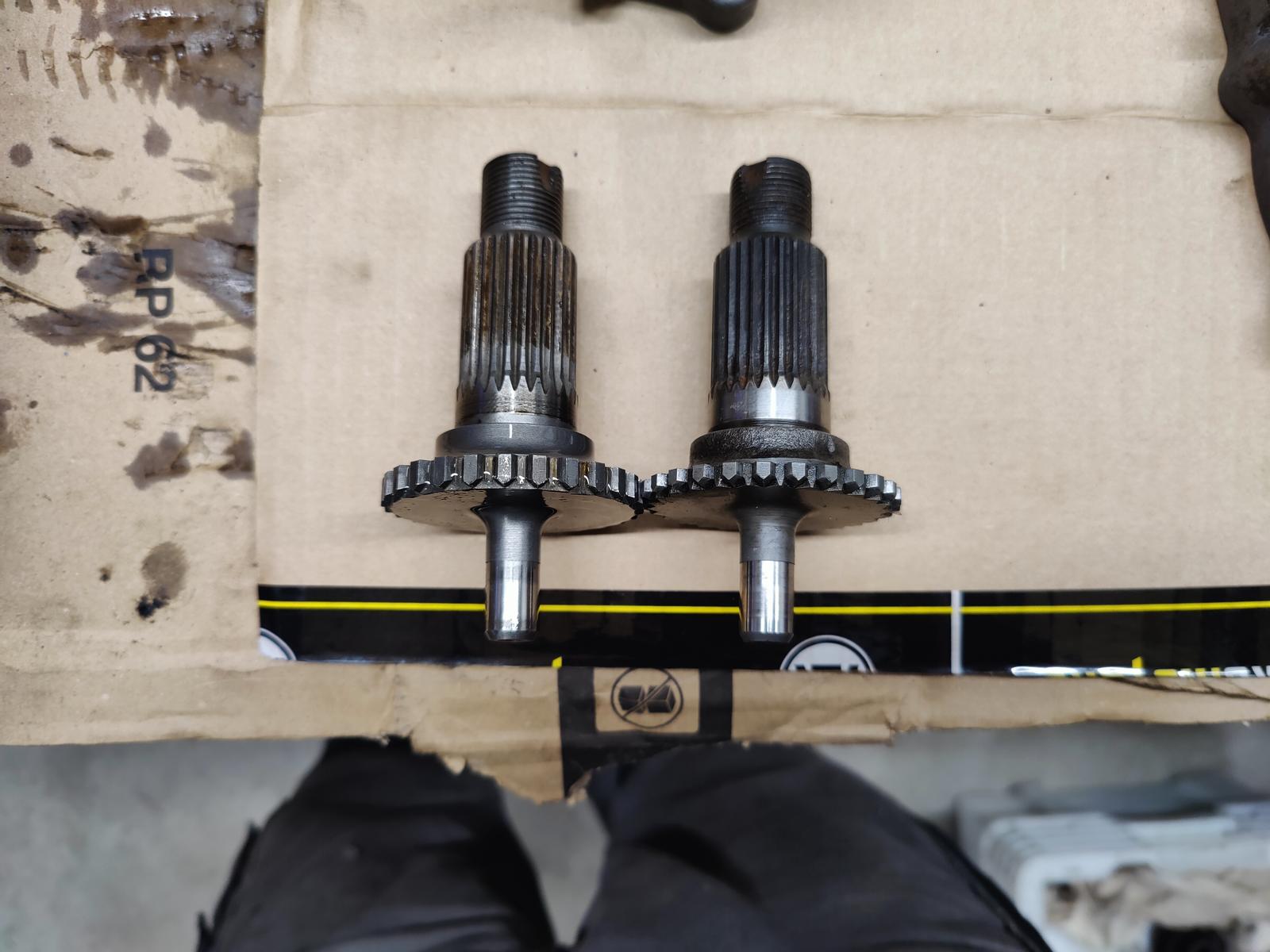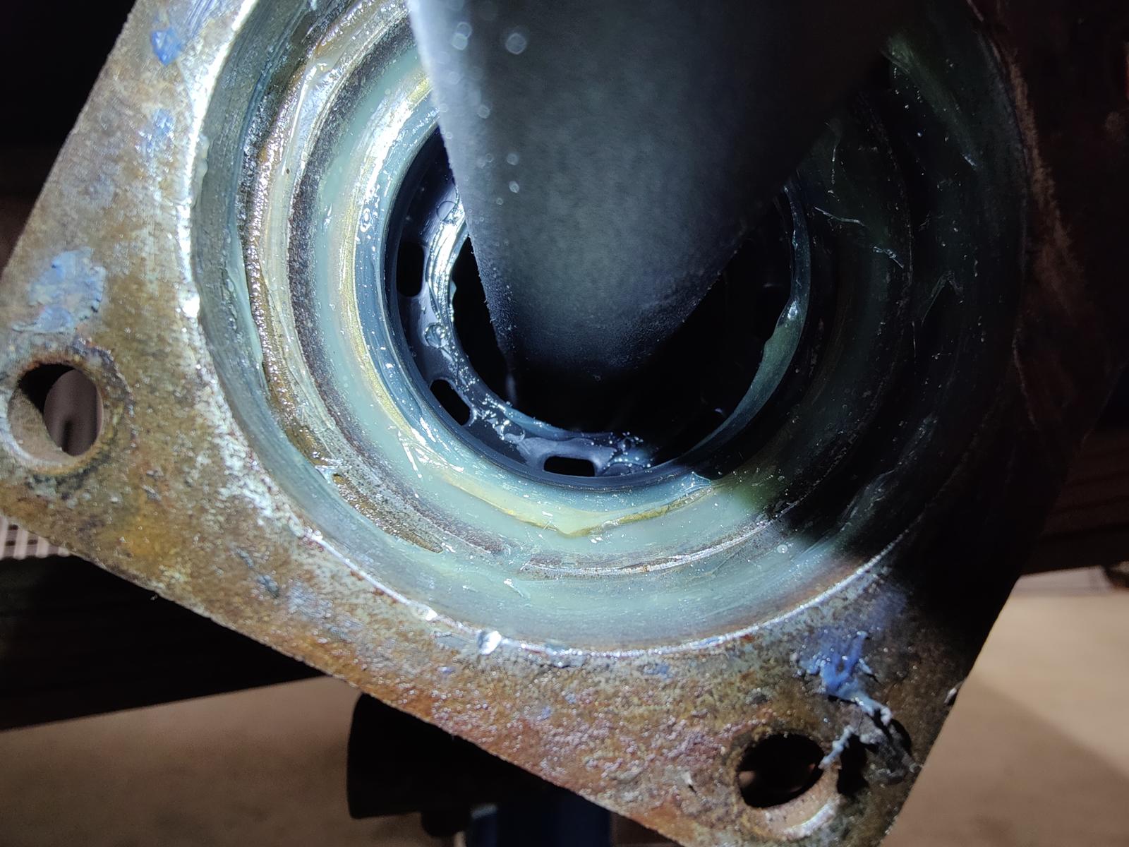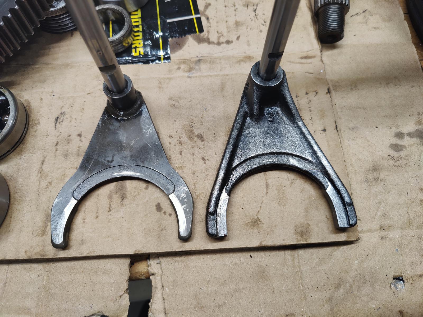 ![]() Tätä en olekaan avannut vielä, jos se mystinen rallattelu ajossa tulisi täältä. Raudat oli vahvistettu, mutta pitkä rauta kahdella vajaamittaisella ja kahdella alkuperäisellä kiinni ![]() Iloinen ylläri oli, että tässä oli vahvistettu etuvedon akseli. Paksuutta noin 2mm enemmän kuin alkuperäisessä (verrokki valkoisen Suzukin alkuperäisen jakiksen sisuksista) Kukkoa annoin sille, purkautuu varsin nätisti ![]() Joku pieni hippunen oli kiilautunut aluevalitsimen kytkentärenkaan kylkeen. Hyvä, että on pysynyt kyydissä, eikä hakeutunut hampaiden väliin... Sisääntuloakselin laakerit sateenkaaren väreissä, tämä laatikko on elämänsä aikana ollut vajaatäytöllä tai ilman öljyä ![]() Varsinkin pienin laakeri sisääntuloakselin päädyssä on käynyt lämpöisenä Etuvedon kytkennän siirtohaarukka vähän kulunut SJ413 jakolaatikon haarukka näyttää olevan paksumpaa materiaalia, toki myös valu, eikä levystä. Laitoin nyt molemmat 413 laatikosta, kun olivat priimaa. Joku pieni käynyt hammasta kokeilemassa, toki voi olla myös tullut ennen karkaisua valmistavassa päässä. Etuvedon pientä neulalaakeria mulla ei ollut, joten huolellinen putsaus ja tuoretta vassua sisään Sekoitellaan osia vähän enempi, 413 jakolaatikosta myös pääakseli, koska tästä lavasuzukin jakolaatikosta joku aikanaan lyhentnyt 5mm rummun päästä, että on saanut 410 kardaanilaipan mahtumaan... Vaihdoin myös nopeusmittarin ulostulosta stefan, oli vanha aika väljäksi mennyt Shimmasin pääakseleiden laakerit service manualin mukaan, sisääntuloon tuli 0,3 shimmi ja ulostuloon 0,1 shimmi. Kuva ei suoraan liity kyseiseen operaatioon Nyppäsin huohottimen teräsholkin pois ja laitoin 1/4"G -kierteen, siihen sitten paineilmaliitin, että saa huohotuksen tähänkin askiin kuntoon. Jarrukilpi lipsahti näköjään 90 astetta väärään asentoon, mutta muutenkin käsijarrun kalustaminen odottaa vielä, että saan uuden käsijarruvaijerin, vanha jäänyt johonkin kiveen tai risuun, kun on taittunut. Kannakeraudoille en tässä välissä tee muuta kuin laita pidemmät pultit, joilla laatikkoon kiinni.