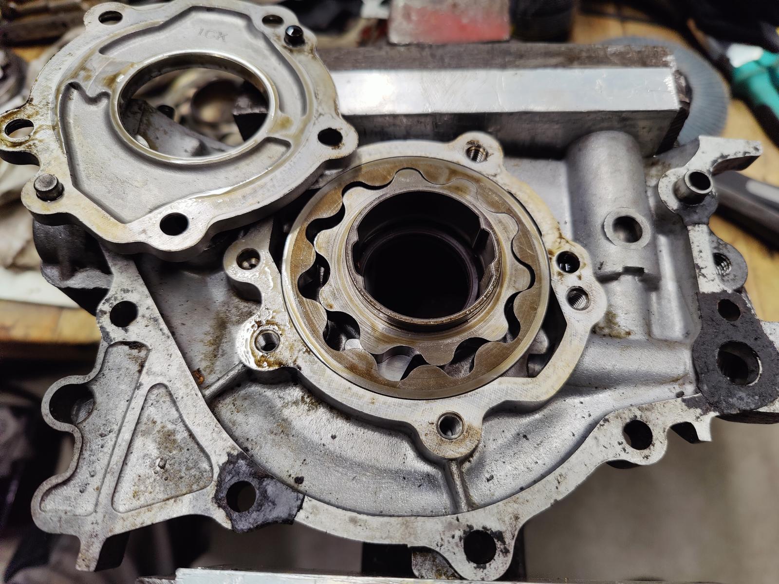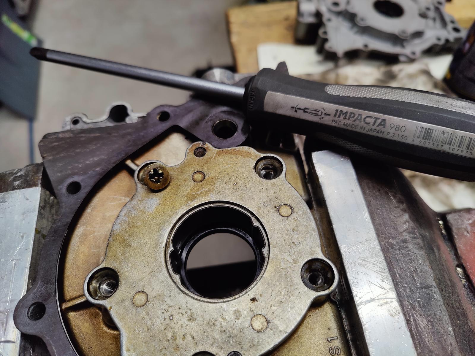 Öljypohjan kun olin ottanut irti, niin katse lukittui öljypumppuun, sen sisälle pitää kurkistaa. Tässä on ollut semmosta ominaisuutta, että kuuman öljyn (niinku peruskaasuttelun jälkeen +100C) tyhjäkäynnillä öljynpaine on lähes olematon. Vähänkään kun antaa kierroksia tai öljy on viileämpää, niin paineiden kanssa ei ongelmaa. Näiden kanssa olisi tullut itku ilman JIS -ruuvaria. Näitäkin oli lentskarimies joskus availlut ja ruuvin kannat oli sen näköiset ![]() Hattu auki ja öljynpaine -asia selvisi heti ![]() Tänne onkin mennyt jotain kikkaretta enempikin ![]() Lihalaatikko -GTi koneen pumpun avasin vertailun vuoksi, siinä aika paljon erinäköinen. En nyt vielä korkannut yläkertaa auki, mutta se on nyt seuraavana listalla. Jos nokka-akselien pukit on ok, niin sit ehjää öljypumppua tilalle ja kovaa ajoa. Ehkä mä samoilla höyryillä katson kampuran ja veivien laakerigapit samalla. Muutenhan tästä tulee konepoka... Kikkareet paljastui olevan lähinnä hitsausroiskeita, joten varmaan käynyt niin, että jostain jäänyt puhdistelusta huolimatta spatteria joka on mennyt öljyn imusihdin läpi