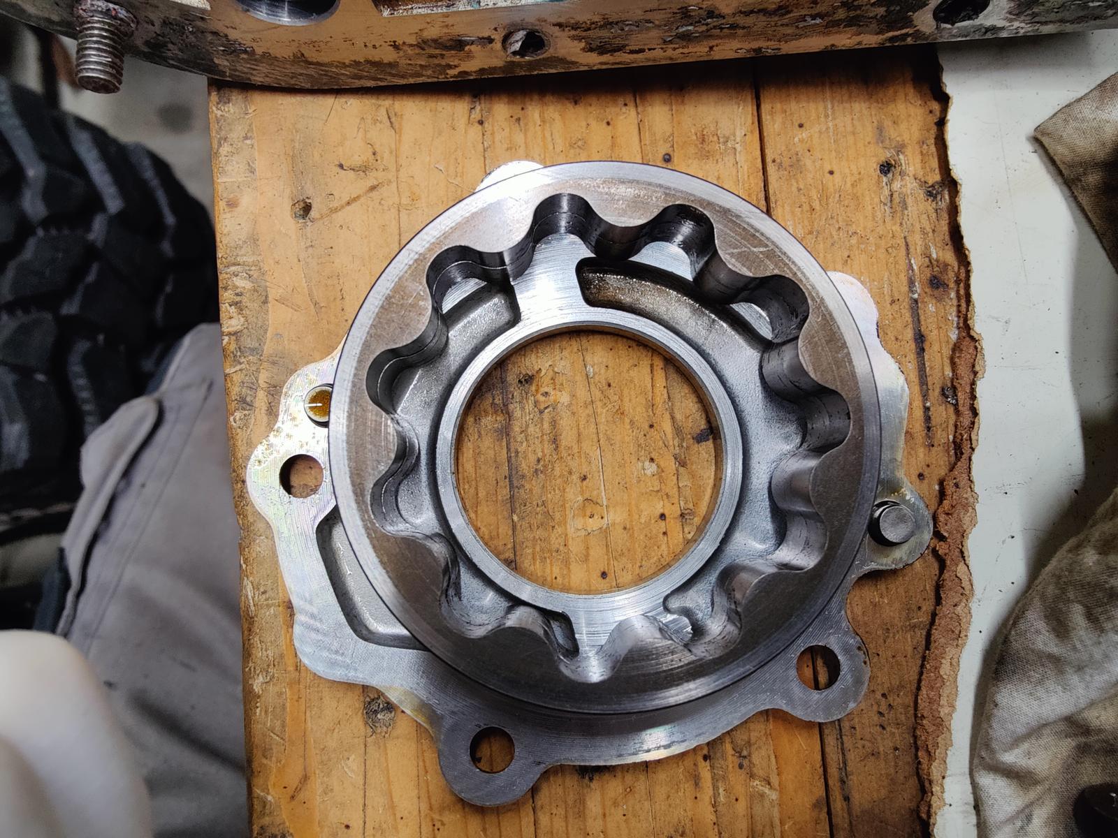 Tyyliin Zuwharrie tai TeamSwift Molemmat näistä mun GTi koneiden pumpuista identtiset Aisin, valussa 865 No kun kaksi pumppua avasin, niin ei kauaa mennyt kun oli pari lisää auki. SJ413 koneesta talteen ottamani pumppu muuten ulkoisesti identtinen mutta valussa numerot 825. Tässä myös 10 kulmainen roottori Ulkokehät päällekkäin ja silmämäärin ihan sama osa. Koska pyörivät näyttää samoilta, niin olisiko eroa paineensäätimessä? No ei ole, Jousi ja mäntä toiminnallisilta mitoiltaan samat. Jos olisin heti vertaillut varaosakirjoista, niin samalla numerollahan nuo säätimet on. No sitten se pohdinta, että olisko GTI pumpussa tiukemmat toleranssit... Service limit sama SJ413 ja GTi Swiftin kirjoissa, eli ei ainakaan voi mikään mahdottoman merkittävä ero olla näissäkään. Sain vielä Riihimäen suunnalta GTi Suzuki kanssaharrastajalta uskonvahvistusta, että mulla on GTi pumput, hänellä samalla valunumerolla ja osien mitoilla omat varaosat. Eli otanta tarkastelussa yhteensä noin 4 GTi öljypumppua ![]() Kysyin vielä Suzukin maahantuojalta, olisiko heillä tietoa pumppujen eroista. Vastaus tuli nopeasti, ei ole varmaa tietoa (tehtaan mukaan eivät ole keskenään vaihtokelpoisia koka eri numerolla, mutta tosiasiassa tämä saattaa olla mahdollista) EDIT: Joo-o, eli niputtaessa konetta katsoin nämä vielä kertaalleen ja oli siellä se ero GTi pumppu 10mm, G13A /G13BA pumppu 8mm. Teoreettinen ero tuotossa ~20%Loppuun sitten vielä vertailu 16v 1 nokka-akselisen koneen öljypumppuun (nyt en ihan saletti ole oliko G13BB vai G16B) Ilmeisiä eroja valuissa triggerianturin paikka, pumpun kuoren muoto ja jotain pikkujuttuja. Toiminnan kannalta olennaisin ero 9 kulmainen roottori. Tämäkin on kyllä vähän semmoinen juttu, että jos kiinnostaisi riittävästi, niin tuokin olisi laskettavissa auki, mikä teoreettinen ero näiden Suzukin pumppujen tuoton välillä on. Jostain tämmöisestä paperista vaan vauhtia ![]() Pyörivien osien pinnanlaatu vähän toiselta planeetalta. Valmistustekniikka muuttunut ehkäpä matkan varrella. Paineenrajoitusventtiili myös mitoiltaan eri niin jousen kuin männän osalta. Näppäräähän olisi ollut, jos olisin mittailut kirjoitellut ylös. Tuolla alussa laittamani TeamSwift -linkin takana jotain mittoja, mutta AP ei ole esim paineenrajoitusventtiilin männän halkaisijaa kirjannut ylös...