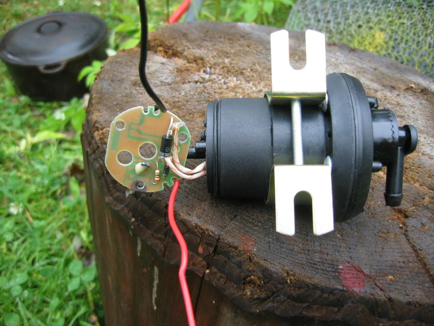 Tossa Juuson videossa kuuluva outo kolkotus on kiinalainen(Biltema paska) solenoidi bensapumppu. Sillä on outoja rytmihäiriöitä. Vastapaineesta riippumatta lyö milloin mitäkin tahtia. Piti avata ja katsoa mitä on syönyt. Kiinalainen on taas ruvennut keksimään elektroniikkaa ja työn jälki on aika karmeaa katseltavaa. Toimintaperiaate näyttäisi olevan sellainen, että Hall-anturilla haistellaan pumpun karan paikka ja tarvittaessa annetaan 555-taimerilla potku solenoidille(imu tahti). Lisäksi johtojen läpivienneissä ei ole mitään tiivisteitä. Muuten kyllä purkki yrittää olla tiivis eli vesi pääsee sisään, mutta ei ulos. Jos mettään jää, niin helppo arvata missä vika! Alla pari kuvaa.