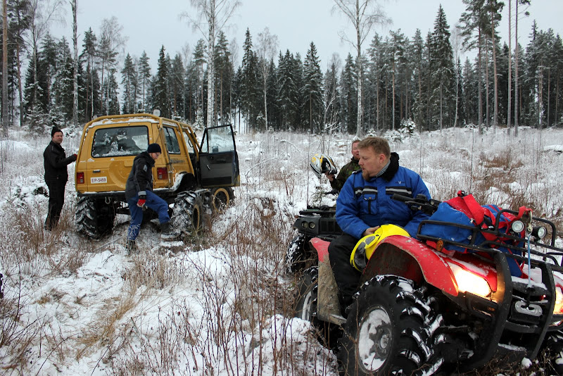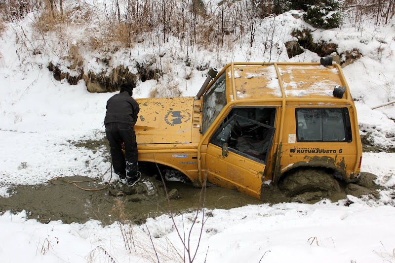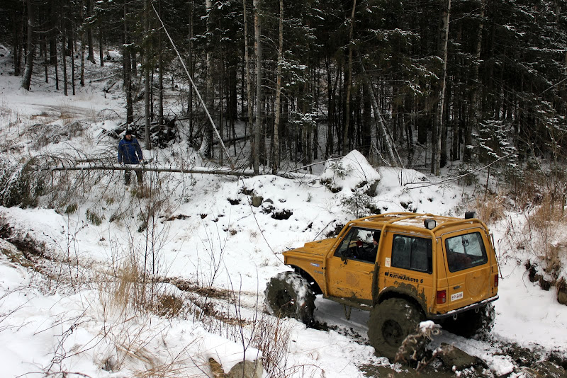![]() Tämä auto on omiaan nimeenomaan suolla ja lillinkissä, mutta tämä suoritus hyyty jo ennen kuin alkoikaan. Eli 2550 kiloinen tonnikeiju vajosi jäihin. ![]() Sopivan pienellä ja tasaväkisellä porukalla ajelu luonasi joutuisasti Hauhon metsissä. Lisää jonossa köröttelyä, kerrankin kuvaajana ajoissa ja ehdein ikuistamaan myös porukan vetäjät mönkkäreineen. Lupa annettiin ylemmältä taholta että tuonne kalliorinteeseen saatte tehdä reitit aivan vapaasti. Tässä videossa kahden auton voimin sitä yritetään. Tuota voisi varmaankin kutsua luomisen tuskaksi, sillä kumpikin ajaa kaksi metriä ja pakittaa saman verran ja taas eteen ja taakse. Melkeimpä vielä samassa tahdissa. ![]() Sitkeys palkitaan. Suunta on vain ylöspäin. Lisää Jeepin käskytystä. Hieno katsella kun tuollainen siisti maasturi saa kenkää kivikossa. ![]() Auton voi kaataa vinssaamallakin, tässä sellainen läheltä piti tilanne. ![]() Tämän auton kuskilla tuntui kaasupolkimessa olevan kaksi asentoa. Ikävä kyllä en ehtinyt mukaan tilanteisiin jotka olisi pitänyt ehdottomasti filmille saada. Ossi kiipesi Mitsulla liki laaki vedolla näyttävästi kallion puoleenväliin, mutta onnistuin missaamaan sen osaksi. Laitan filmin kunhan opettelen hieman leikkelemään sitä ensin. Eli en ehkä lähiaikoina. Ei muuten mutta Pikku Myy soitteli tänään ja kysyi että kai se filmille tuli.