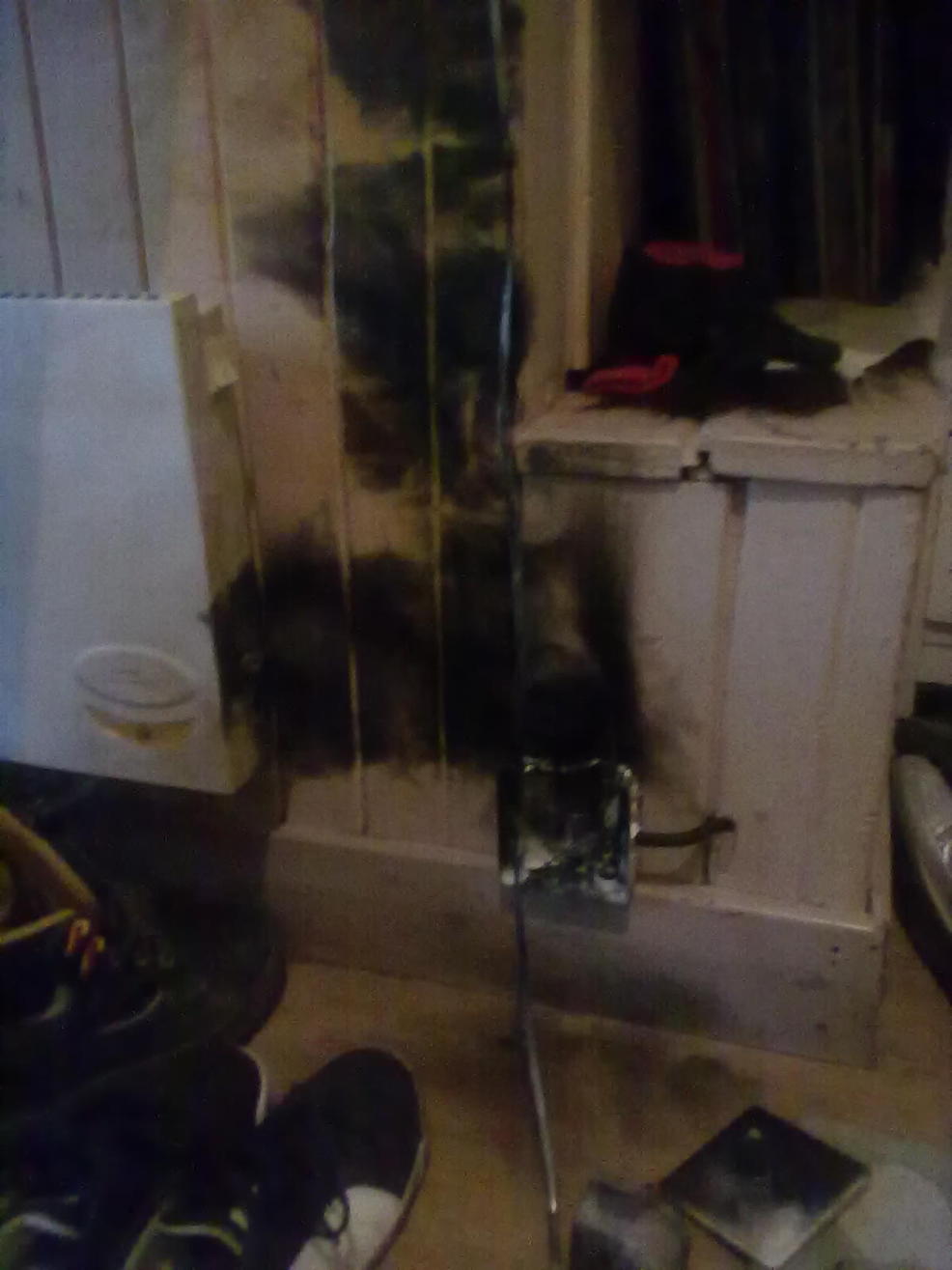 ääni oli melko rouhee, muuta valoa ei näkynyt kun avoliekki joka tos rasias oli... Kattelin ikkunasta kaatosadetta ja odottelin salamointia taivaalla mut tulikin sisälle asti, eka salama osui kohille ja kersat meni ottamaan pleikkaria irti seinästä mut kääntyivätkin eteisessä ympäri "iskää tääl palaa!!!". Savu oli melko kitkerä....