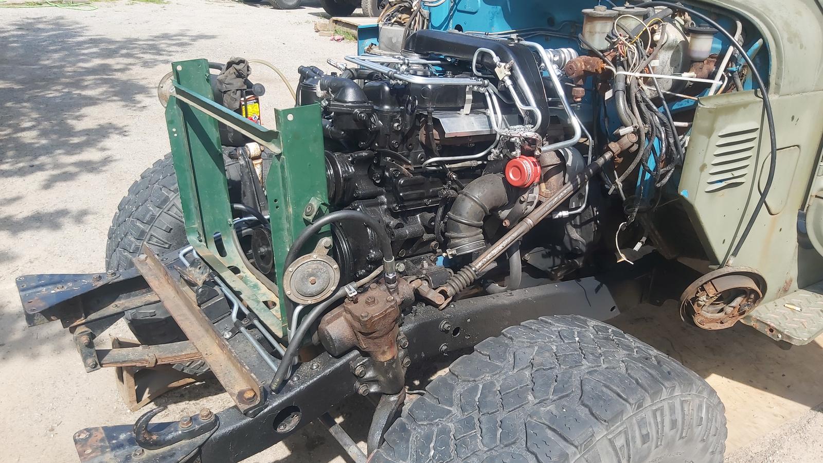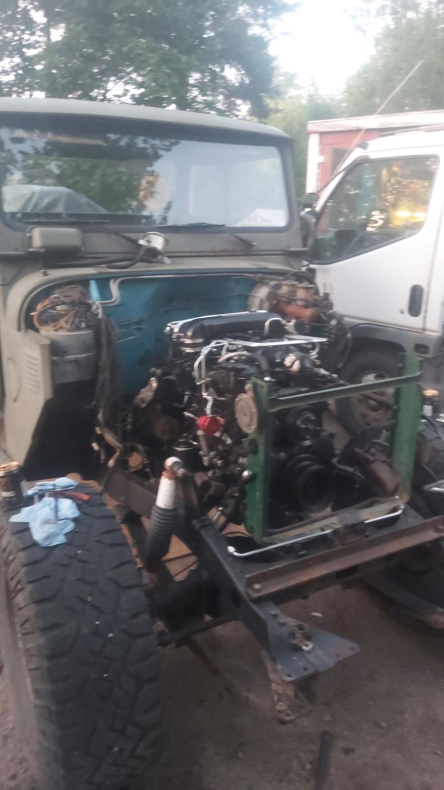 no niin nyt on saatu kone ja laatikko paikoilleen kaikki toimii hyvin uusi laturi tuli  nyös.ja uusi kytkin paketti laatikko on nyt hj61 5v pää laatikko ja jako laatikko on hj60 minne on laitettu Bj45 akseli sisälle niin saatiin kardaani käsijarru.3 tuuman suora putki mikä pitää huolen kauniista ääni maailmasta.
