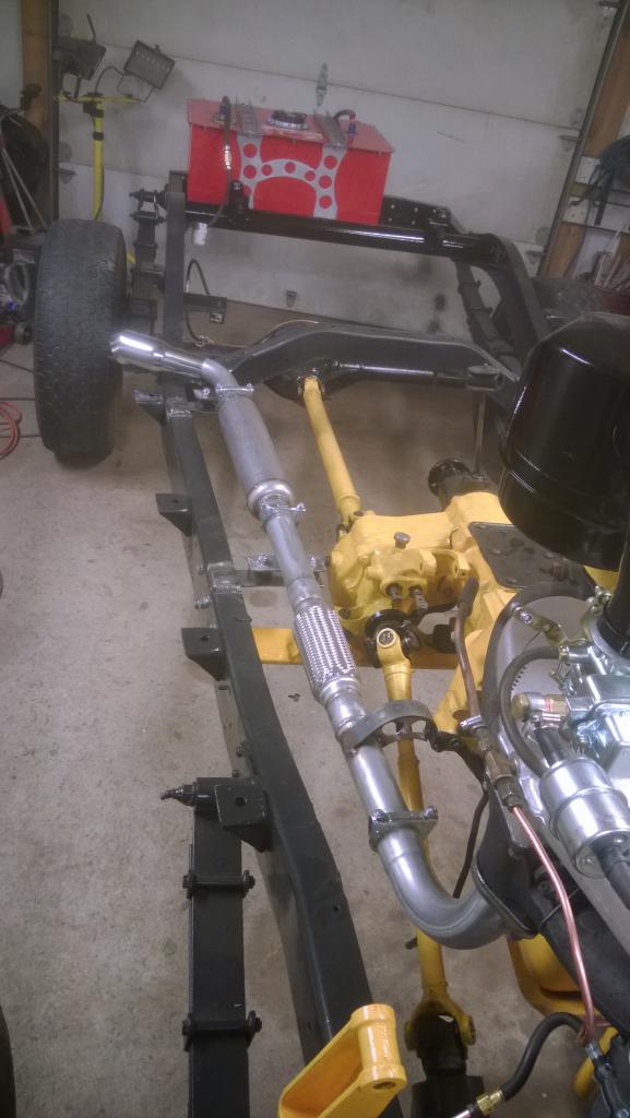 Töistä tullessa tuli piipahettua biltemassa ja tarttu mukaan mm. pakoputken osasia niin pikasesti ehti maalaamisen jälkeen vielä suunnitella pakoputkeakin. Joskos sen jotenkin noin asemois? Tuennat tuolle pitää viritellä jollain kumijudansseilla, niitä ei ehtiny vielä sen enempää suunnitella. Tullistakin tuli ilmotus, seuraavat osat olis soomessa, eli hyvällä tuurilla viikonloppuna pääsee uuden kaasarin, bensapumpun, bensalinjan, jarruletkut ja putket virittelemään... |