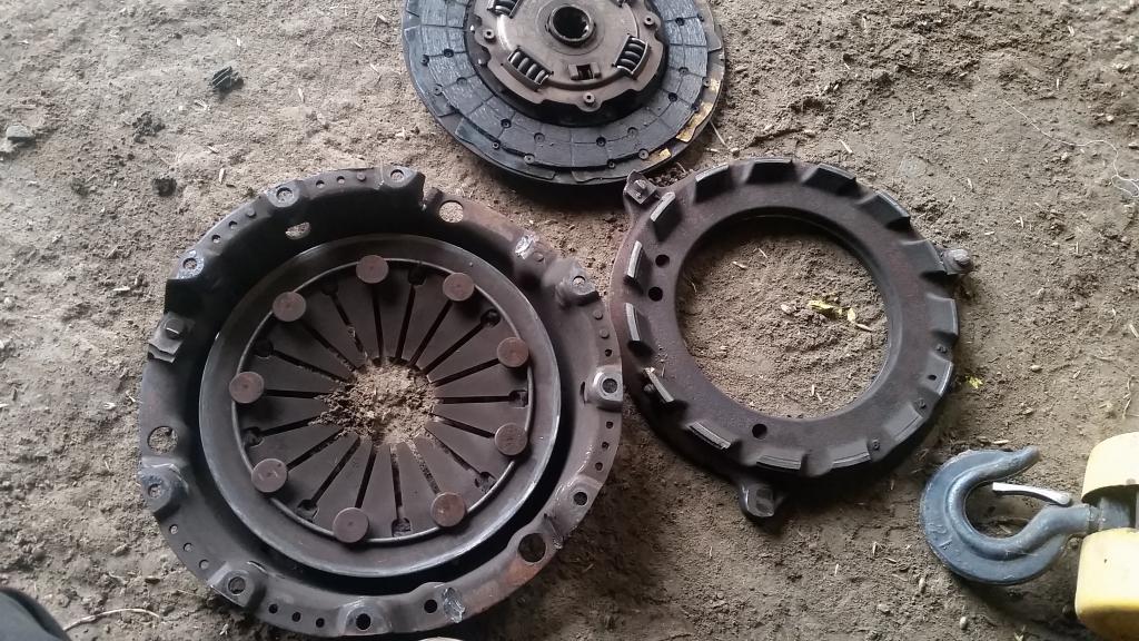Kytkinhän tässä kolahteli välillä ikävästi, tuli nyt samalla sekin laitettua. Asetelmahan sieltä oli aivan palasina ja kytkinkoppa paikka paikoon halki.