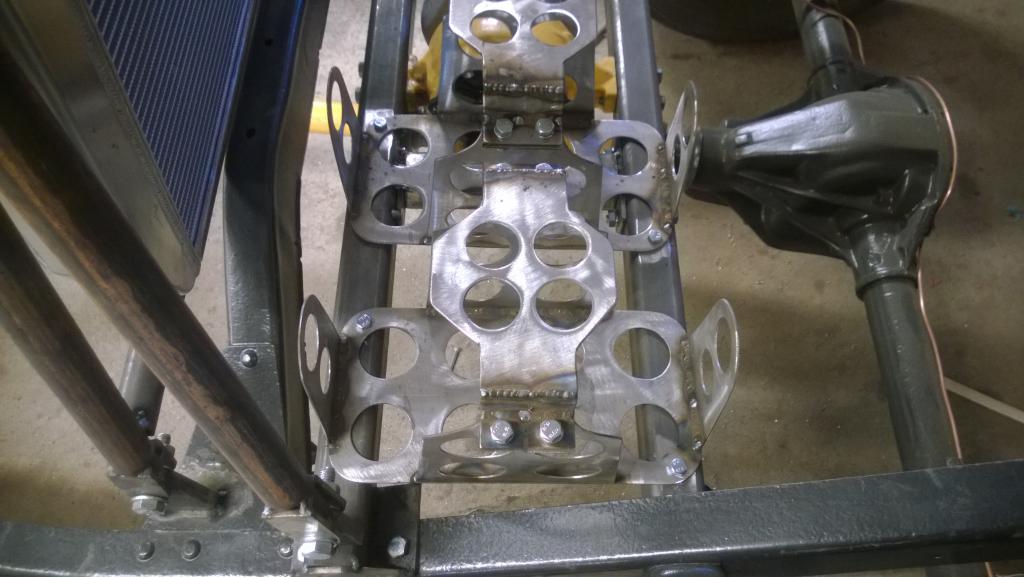 nyt suunniteltu ja enää vailla muutamaa pulttia etupalkin kiinnittämiseksi runkoon ja hitsaamattomat saumat pitäs vedellä läpi. Sitten odottelis enää maalia pintaan. Tuli jo pikku hiljaa aloteltua syylärin telinettäkin, nuo kuvissa näkyvät 'tabit' poikkipalkin etu- ja takapuolella ovat telineen alakiinnikkeitä, noista putkikehikko tuetaan pystyyn syylärin kiinnitystä varten. Joskos tuota telinettä sais jatkettua viikonloppuna ja mietittyä samalla akkutelineiden paikat ja kiinnitykset niin sais nekin maalaukseen. |