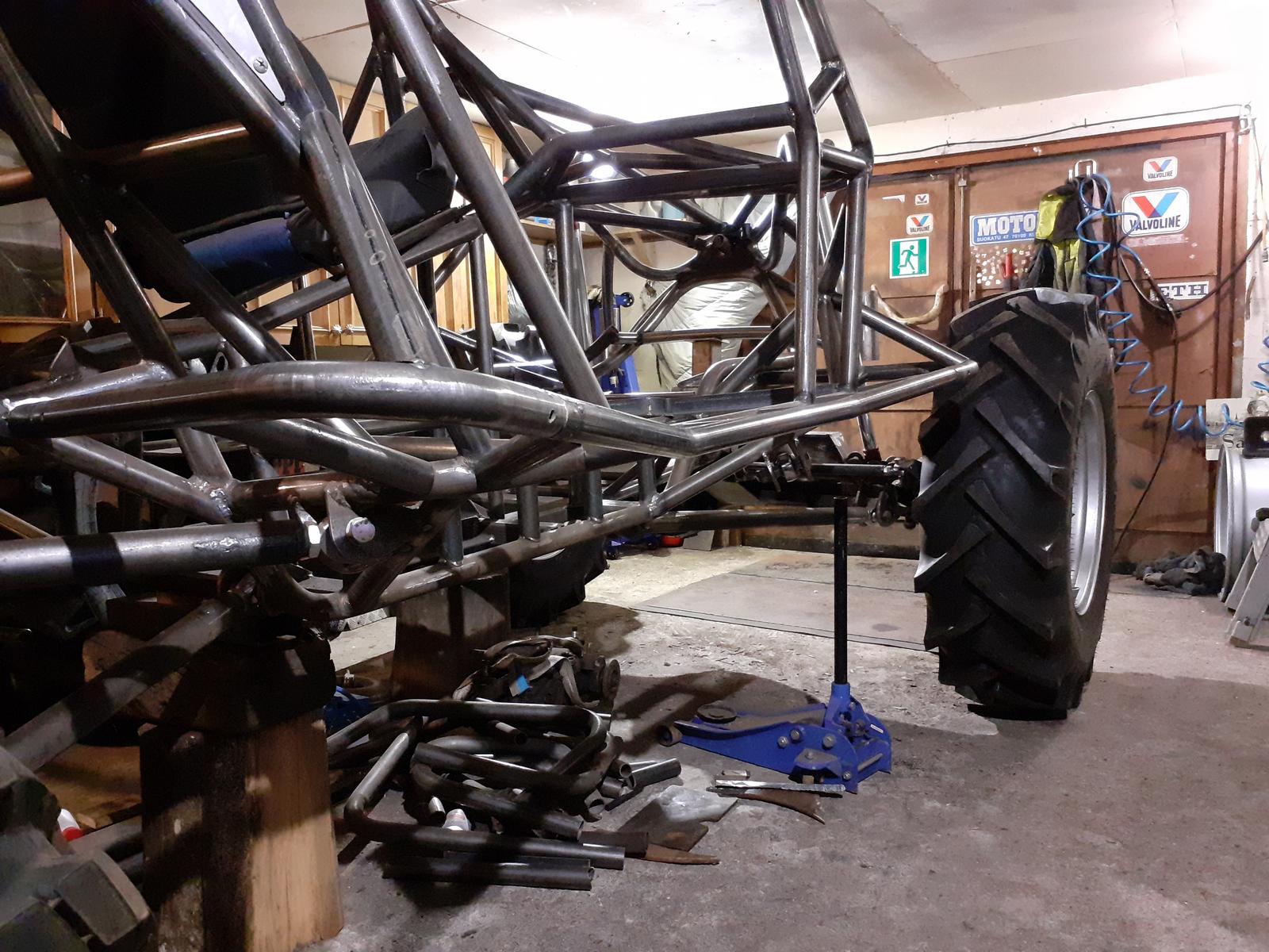 Nonni. Nyt on eturenkaat paikoillaa.. Koitin nostaa tunkilla ajokorkeutee, mut takapää jäi 15cm alemmas ku ottaa kori kattoon kiinni