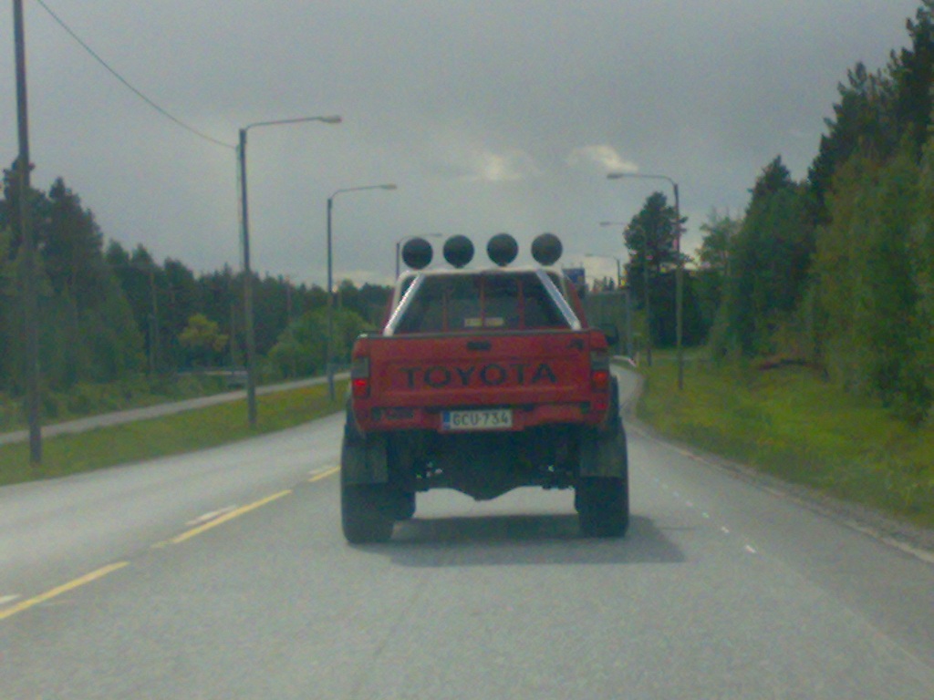 Joensuu - Outokumpu tiellä näkyi valkoinen HJ-6x jossa oli jotain laikkuja maalipinnassa. Sitten illalla Varkaudessa ja Varkaudesta Joensuuhun päin tuli kolme maasturia vastaan ihan vinssit ja pelit oli kiinni. Varkaudessa vastaan tuli Hilux jonka näin ihan selvästi ja näkyi hilux miehelläkin pää kääntyvän hojon suuntaan. Muut tuli isolla tiellä niin nopeasti vastaan että ehdin nähdä vain valot, isot renkaat ja vinssit... |